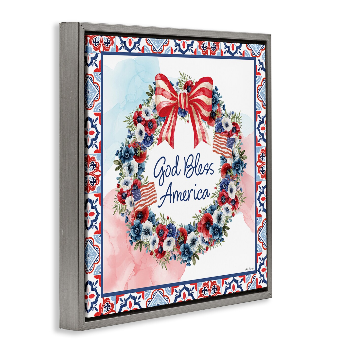 Stupell Industries God Bless America Wreath Floating Frame, design by Nicole DeCamp