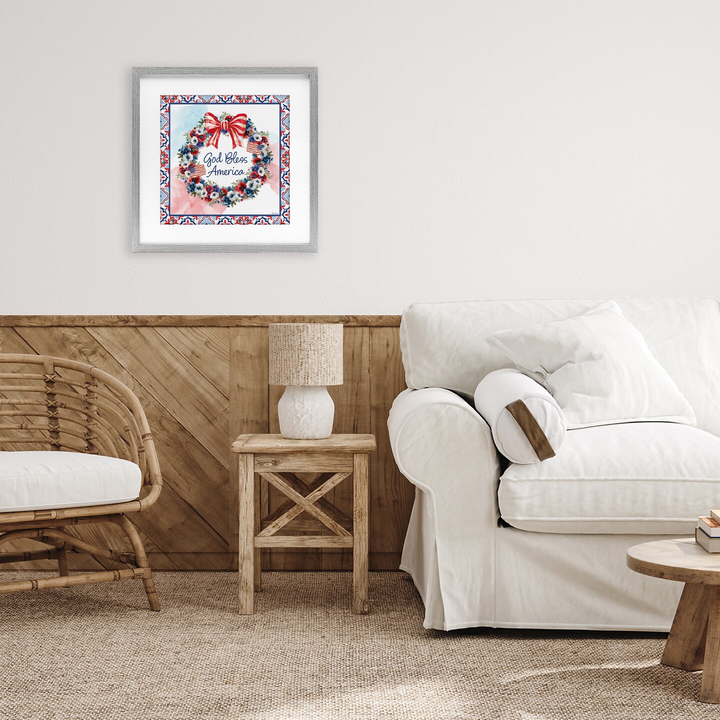 Stupell Industries God Bless America Wreath Framed Print Under Glass, design by Nicole DeCamp