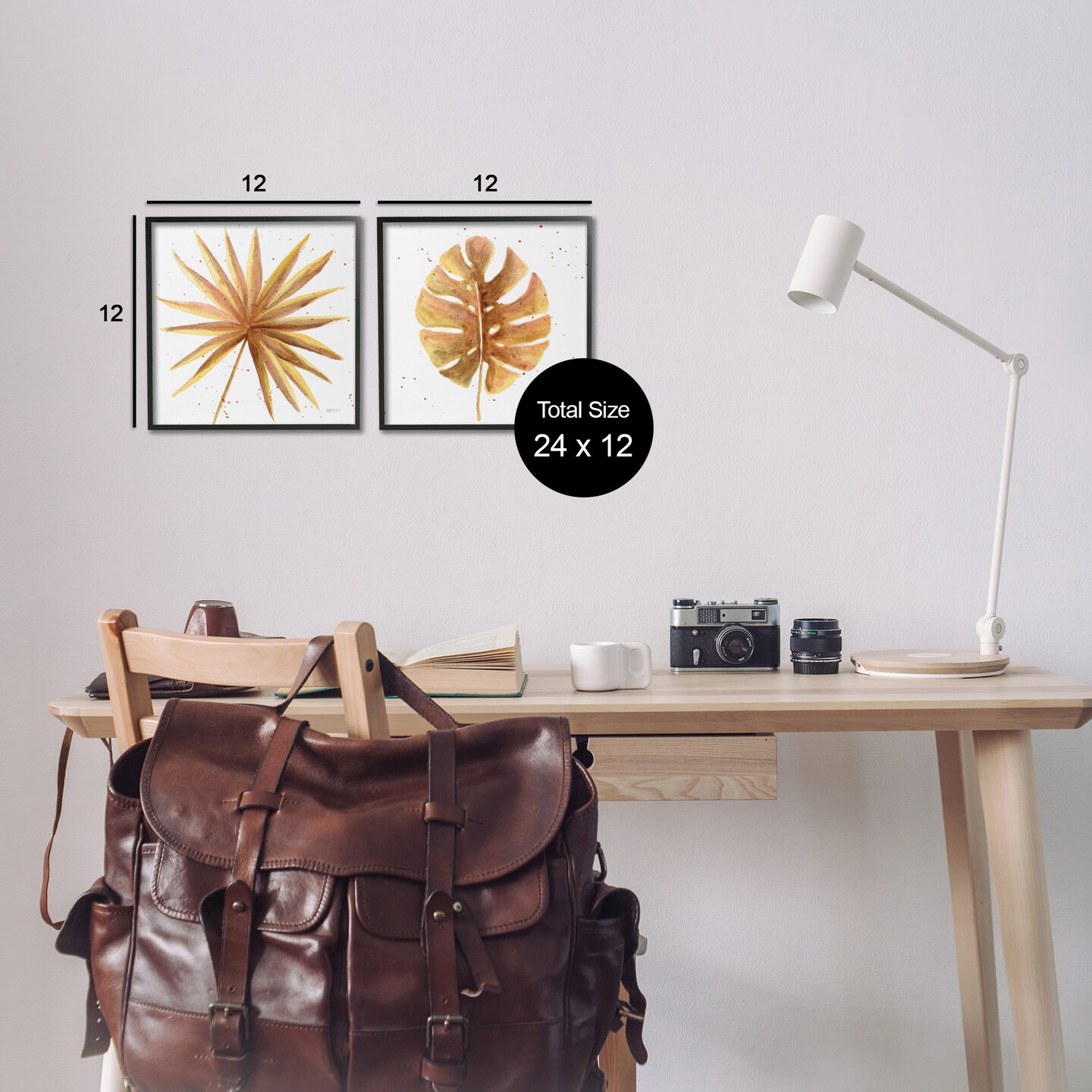 Stupell Industries Golden Palm Monstera Leaves 2 pc Framed Giclee Wall Art Set Design by Yvette St. Amant