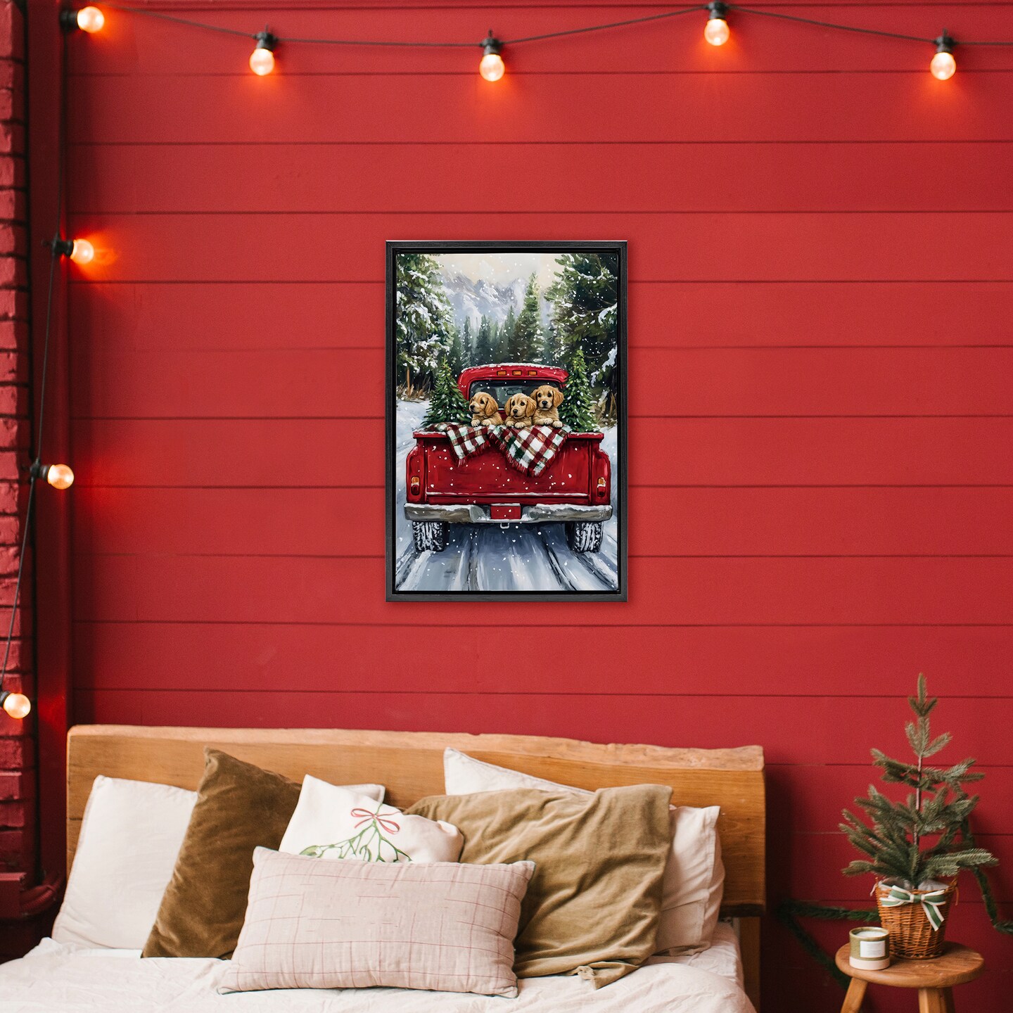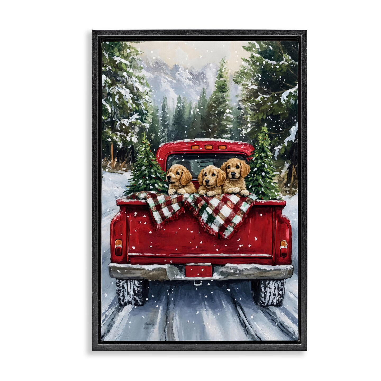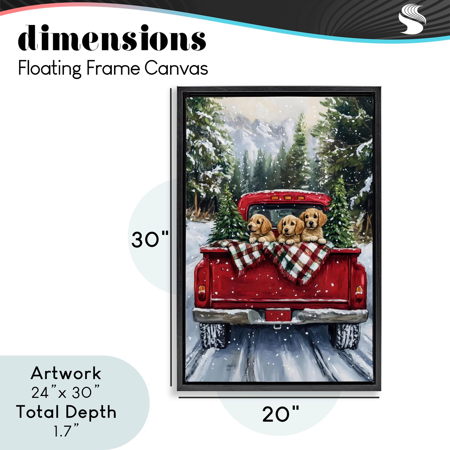 Stupell Industries Golden Pups Christmas Truck Floating Frame, design by Petal Prints Design