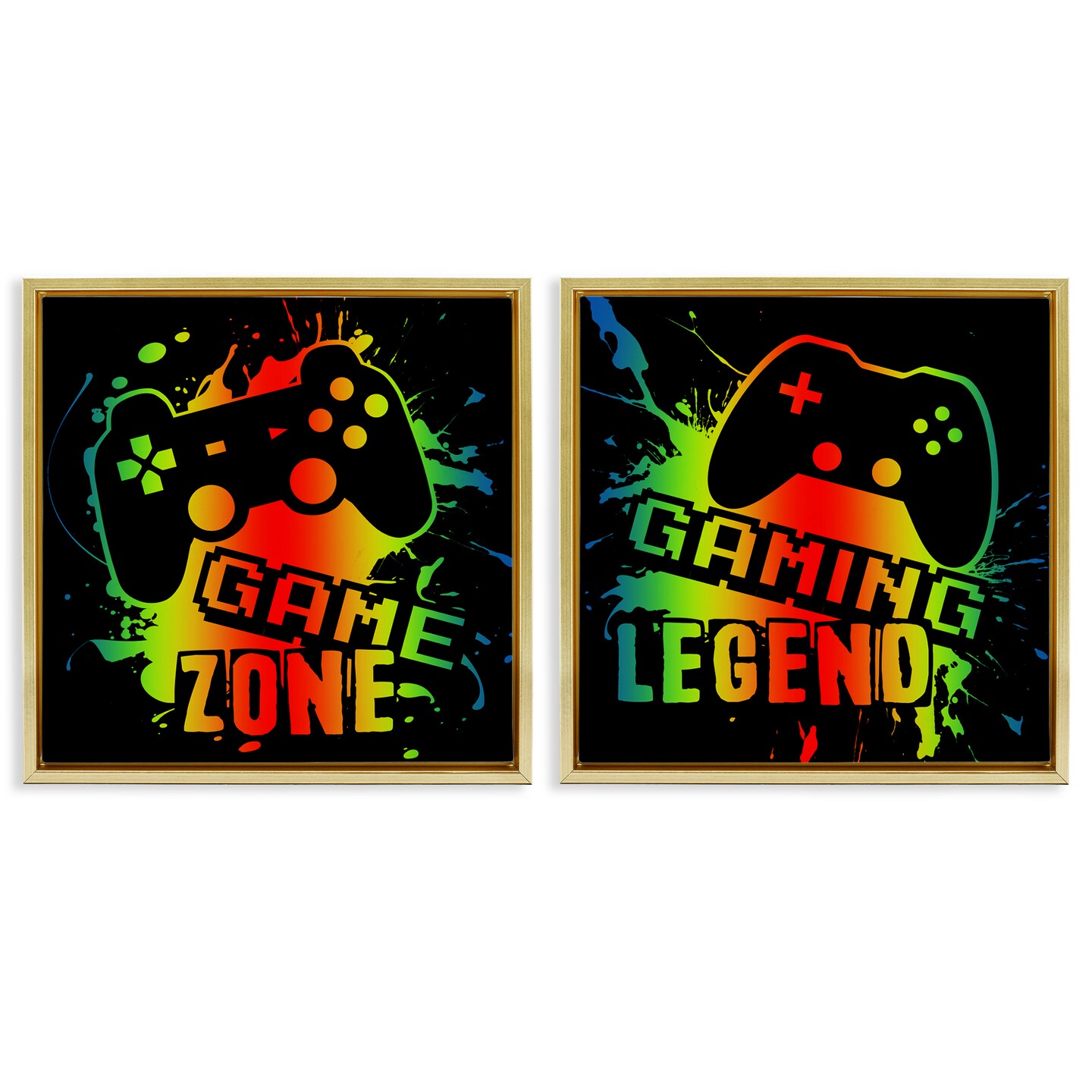 Stupell Industries Gradient Gaming Phrases 2pc Floating Frame Set, design by Marcus Prime