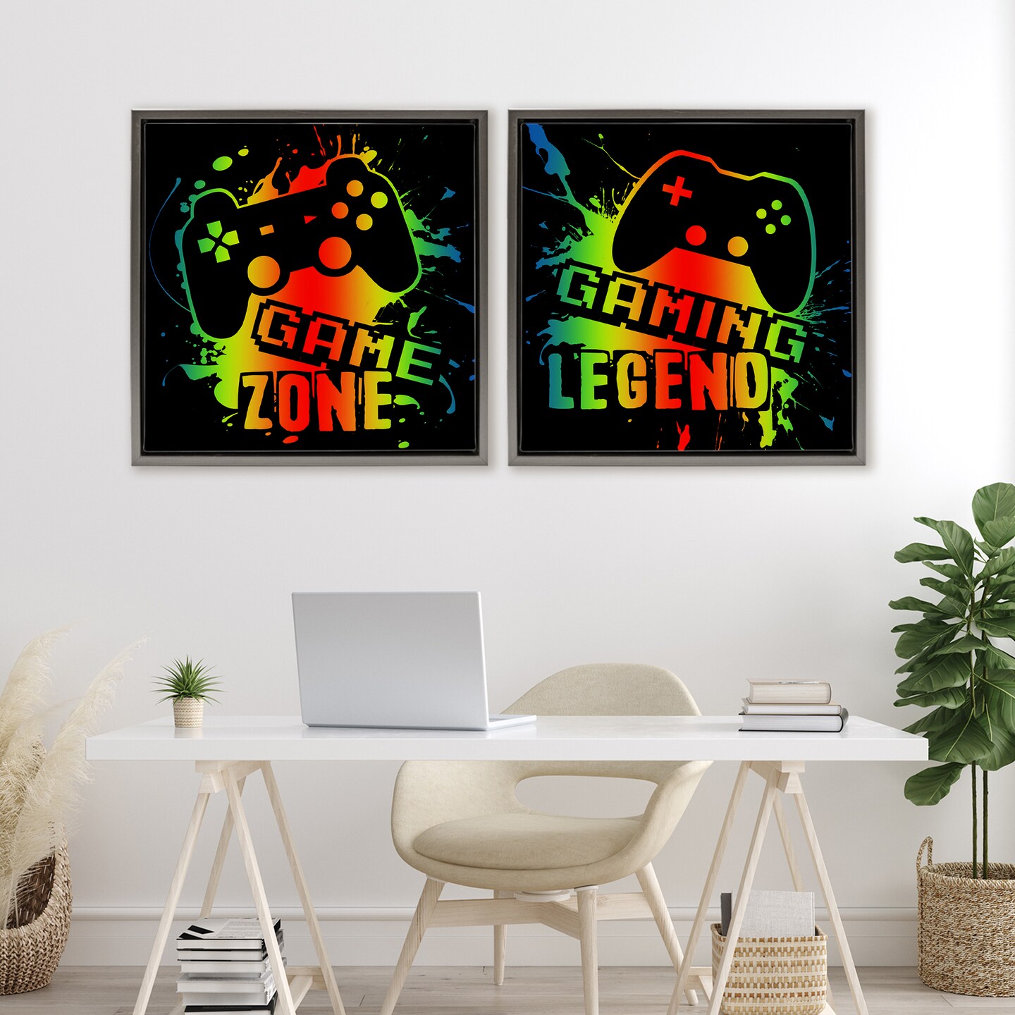 Stupell Industries Gradient Gaming Phrases 2pc Floating Frame Set, design by Marcus Prime