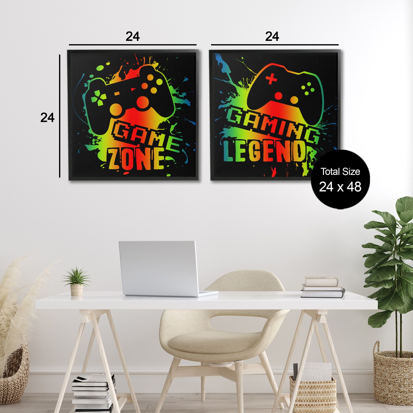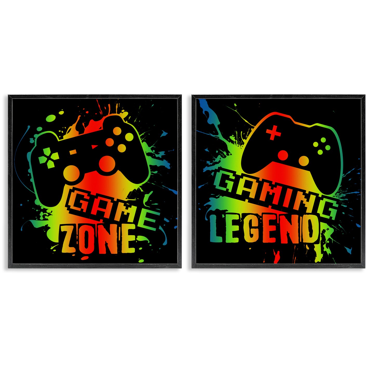 Stupell Industries Gradient Gaming Phrases 2pc Framed Giclee Set, design by Marcus Prime