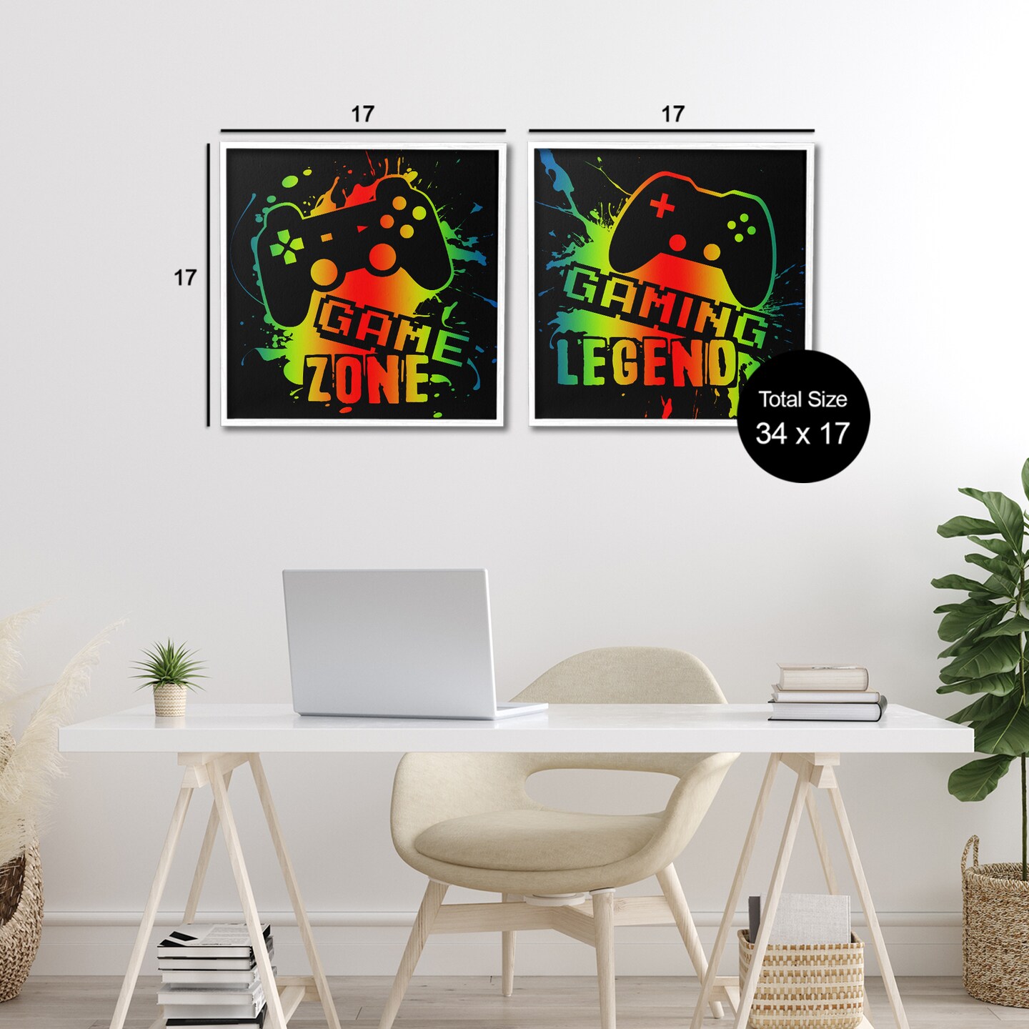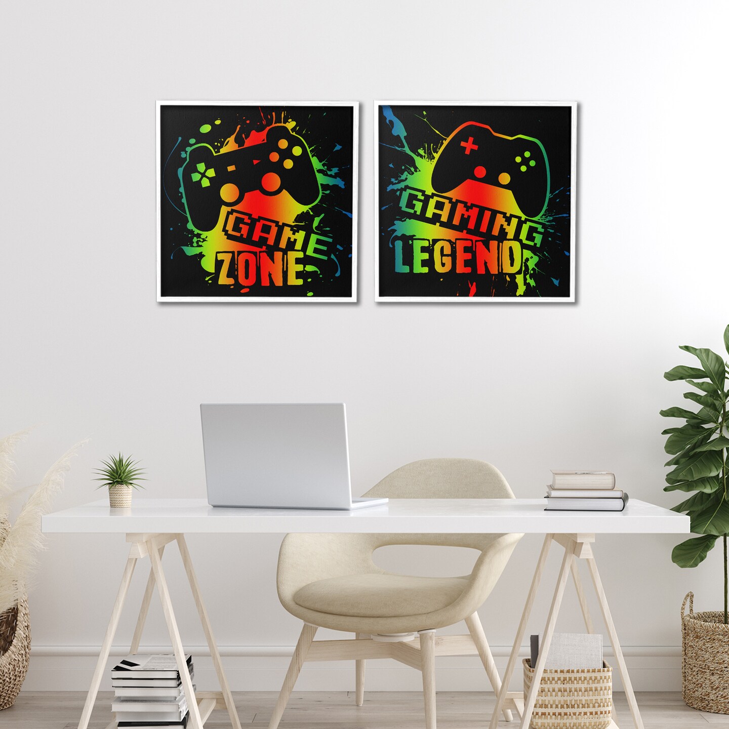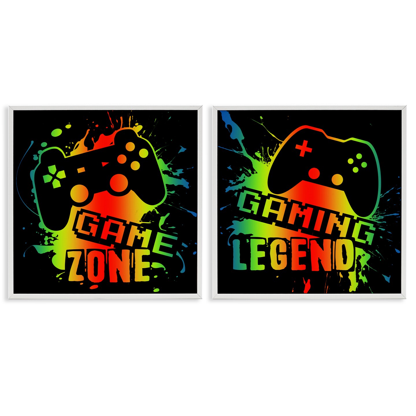 Stupell Industries Gradient Gaming Phrases 2pc Framed Giclee Set, design by Marcus Prime