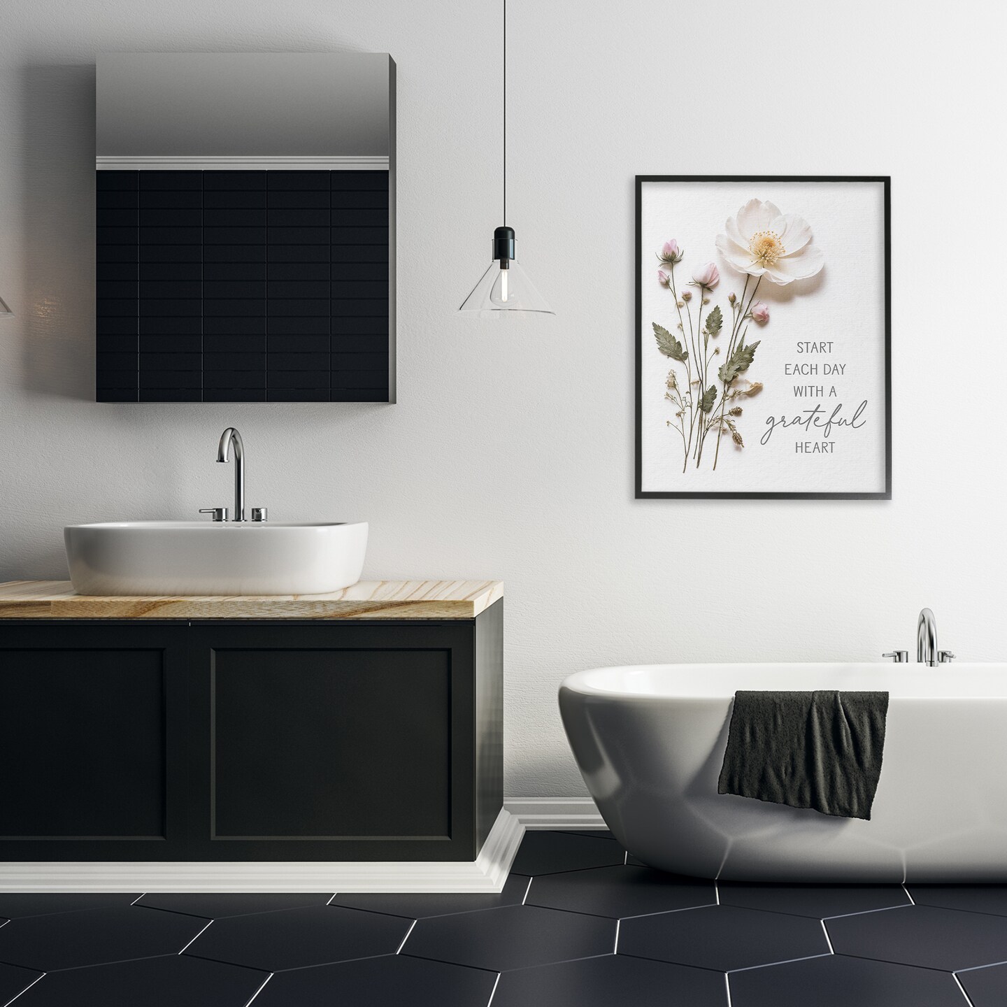 Stupell Industries Grateful Heart Pressed Flowers Framed Giclee, design by Lettered and Lined
