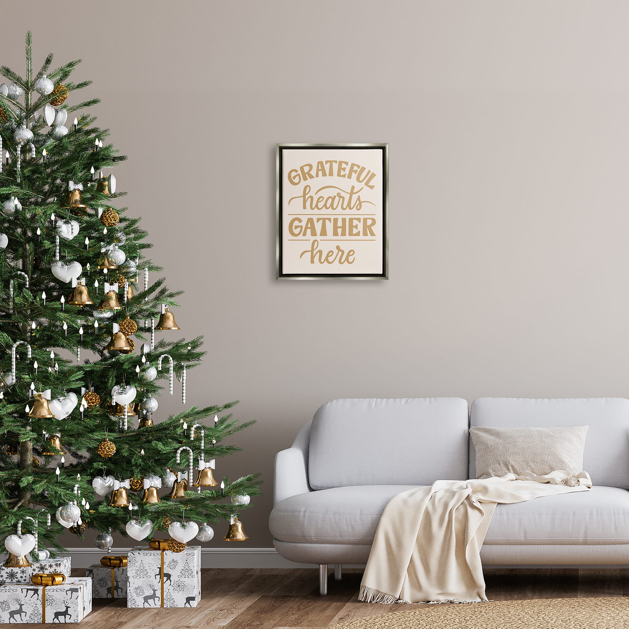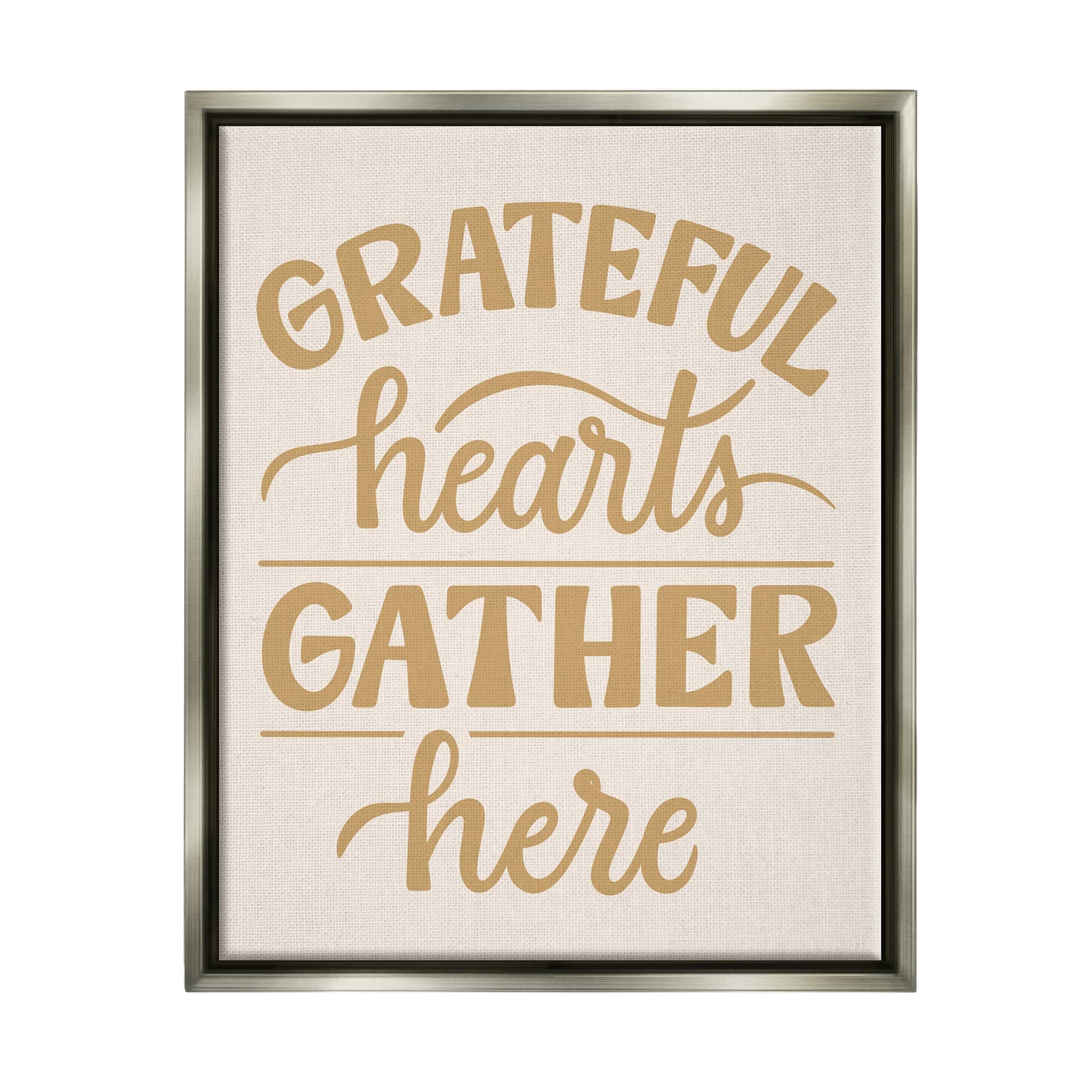 Stupell Industries Grateful Hearts Gather Here Phrase Framed Floater Canvas Wall Art