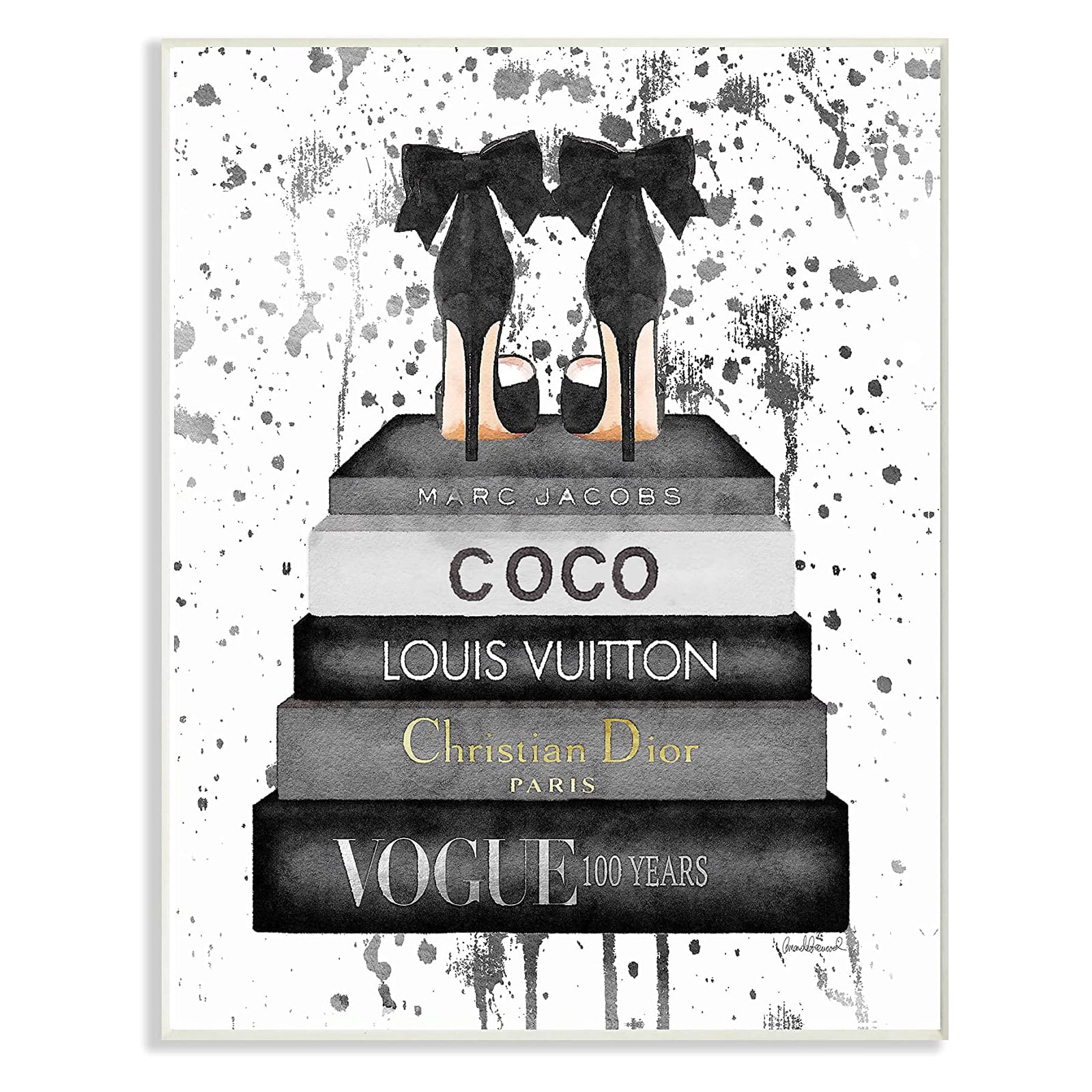 Stupell Industries Gray Glam Fashion Book Stack with Black Pumps Wall Plaque