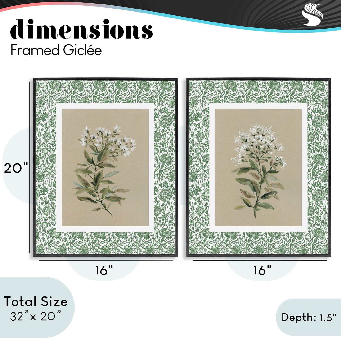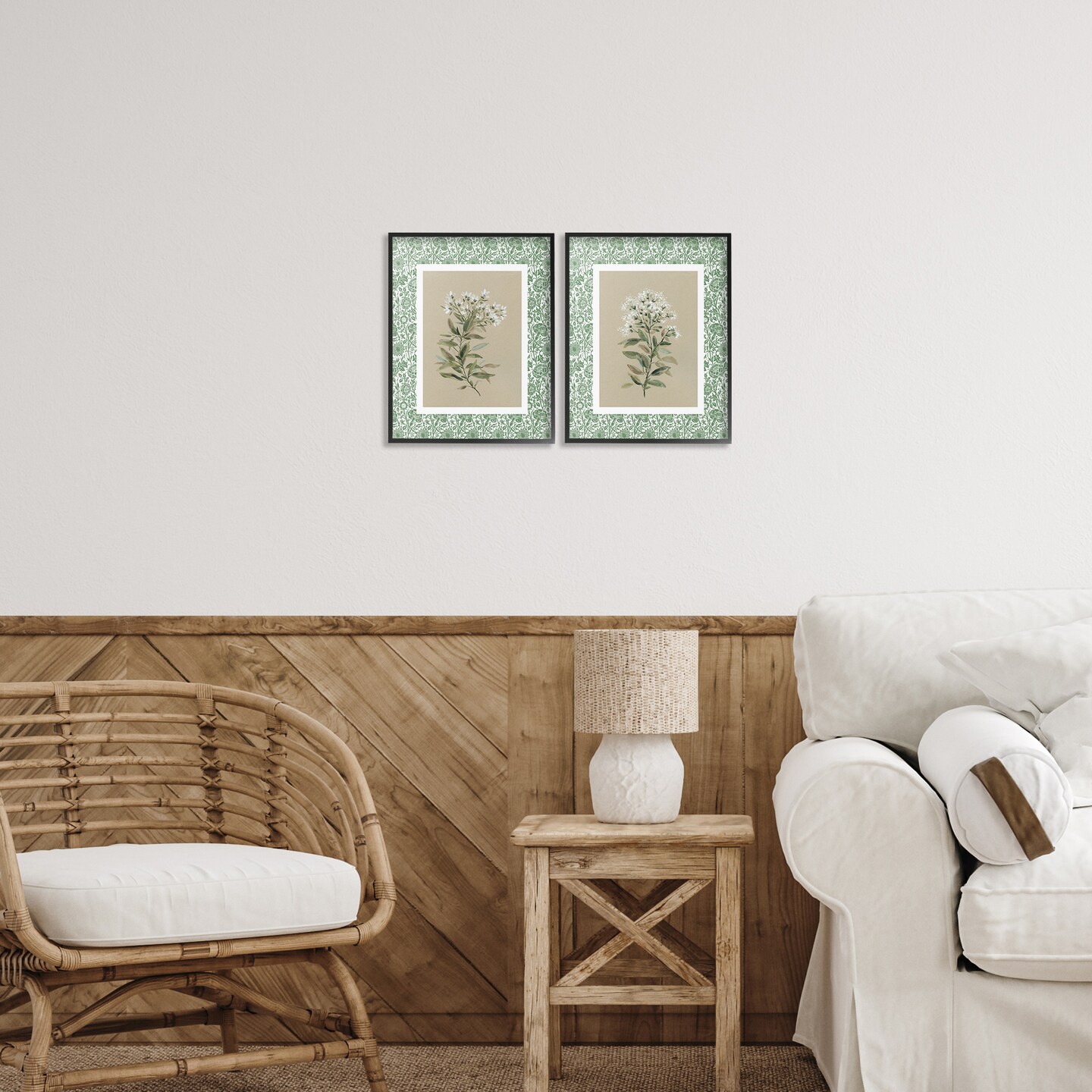 Stupell Industries Green Botanical Patterned Florals 2pc Framed Giclee Set, design by Carol Robinson