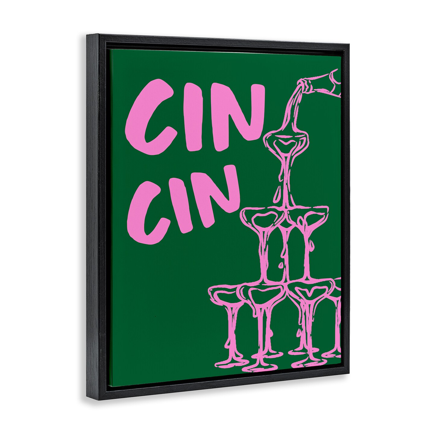 Stupell Industries Green & Pink Cin Cin Floating Frame Design by House of Lulu