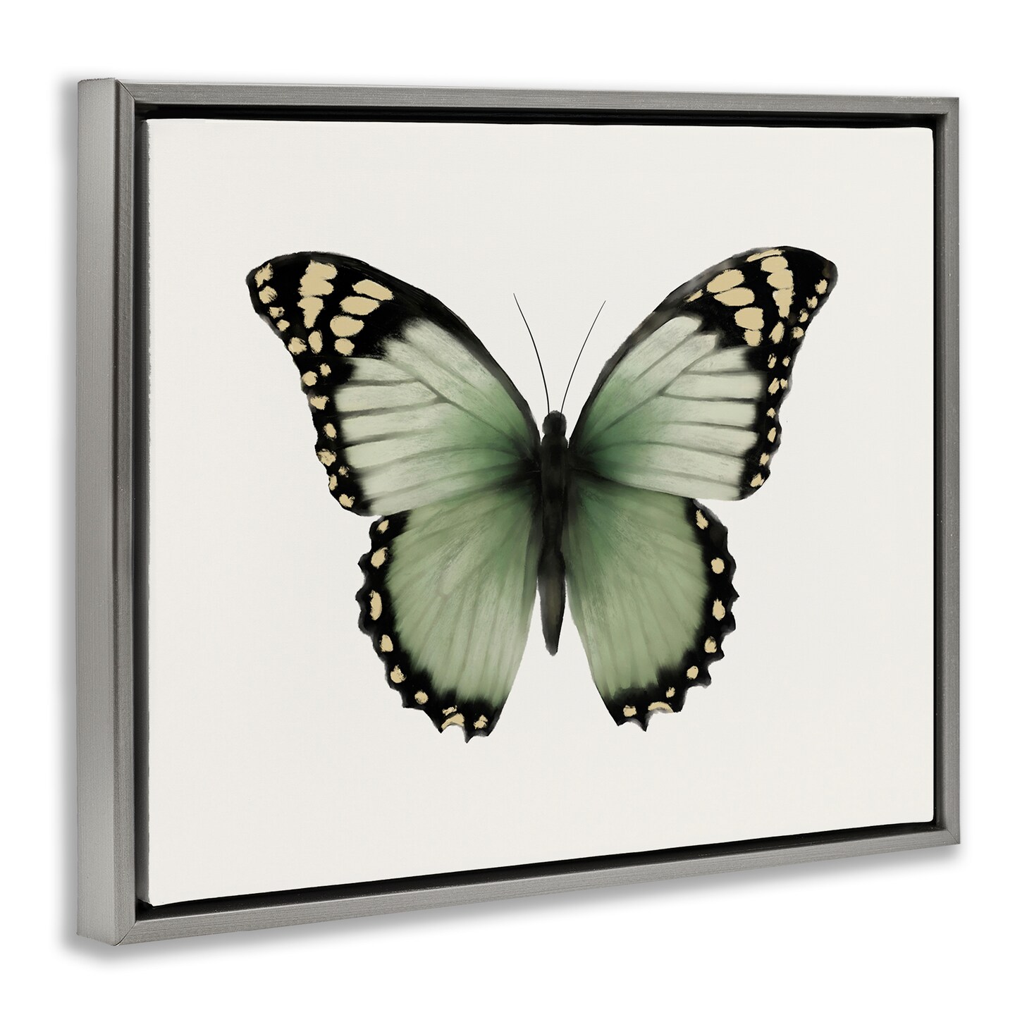 Stupell Industries Green Symmetrical Butterfly Framed Floater Canvas Wall Art Design by Elizabeth Medley