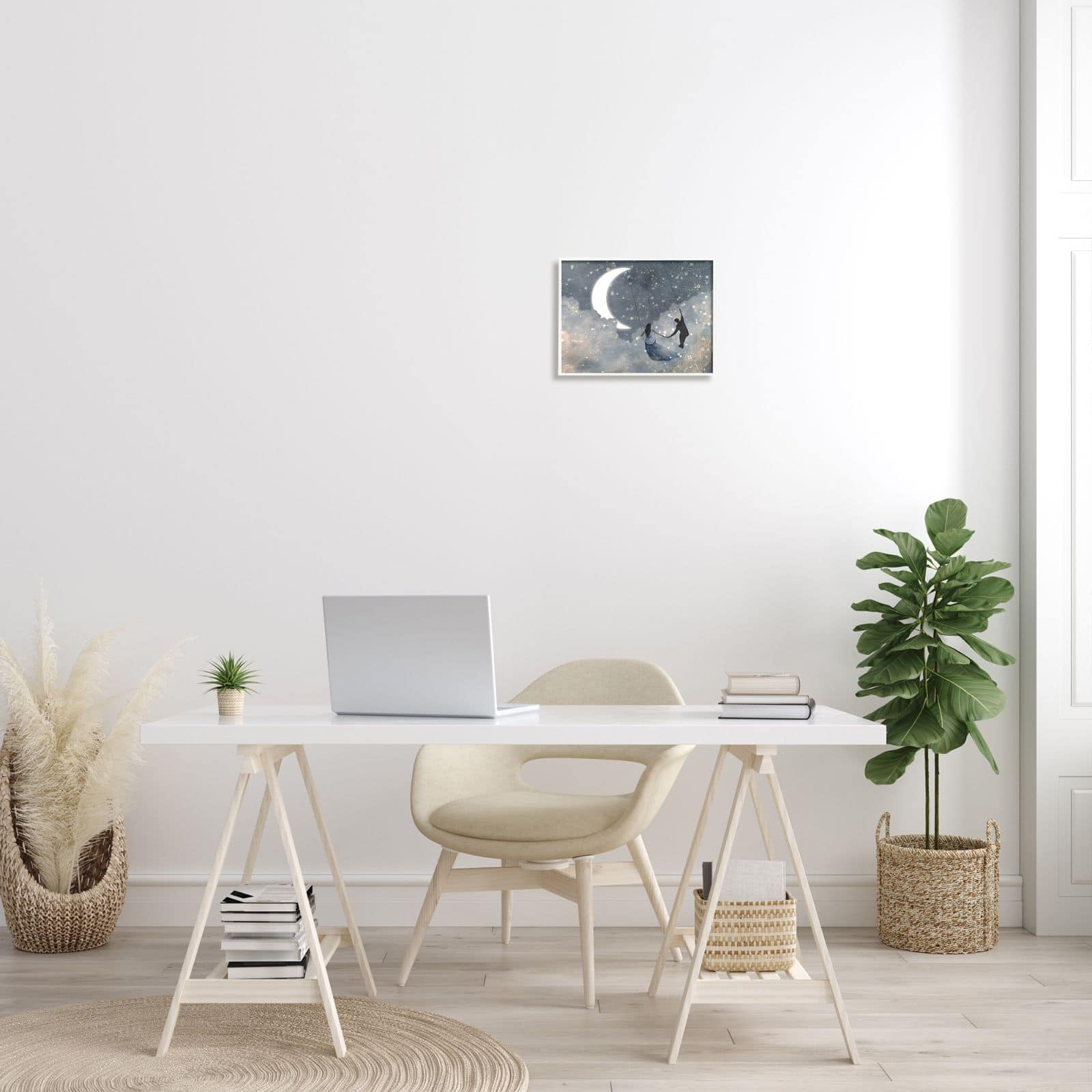 Stupell Industries Grey and Blue Celestial Love Sky Swinging by the Crescent Moon and Stars Framed Wall Art