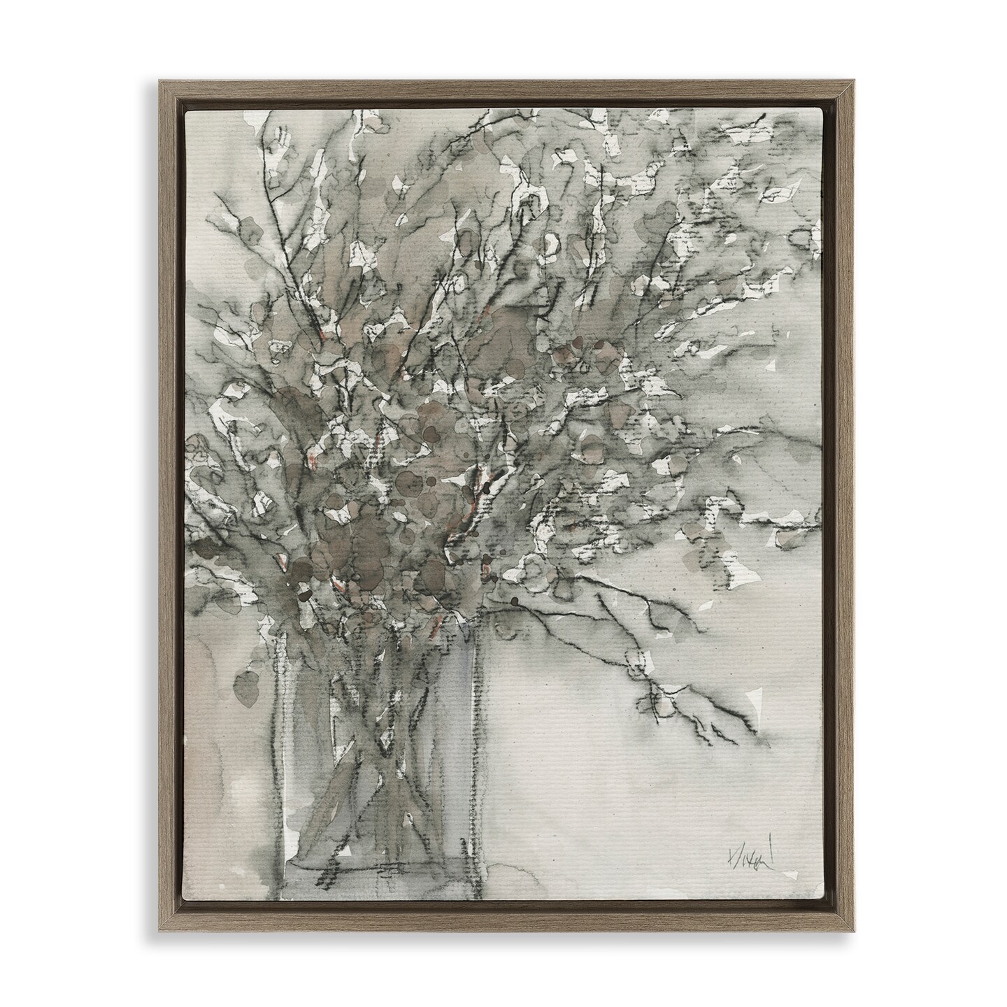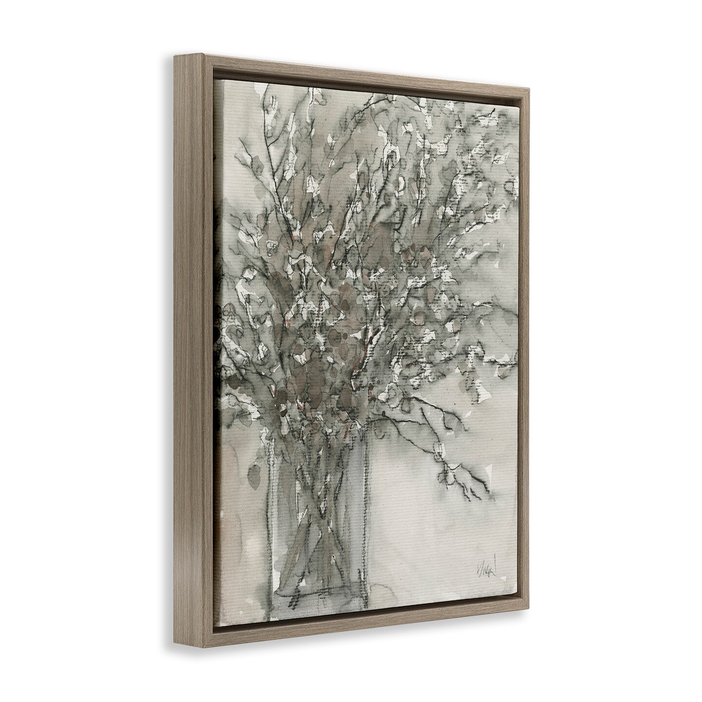 Stupell Industries Grey Charcoal Bouquet Framed Floater Canvas Wall Art Design by Naomi McCavitt