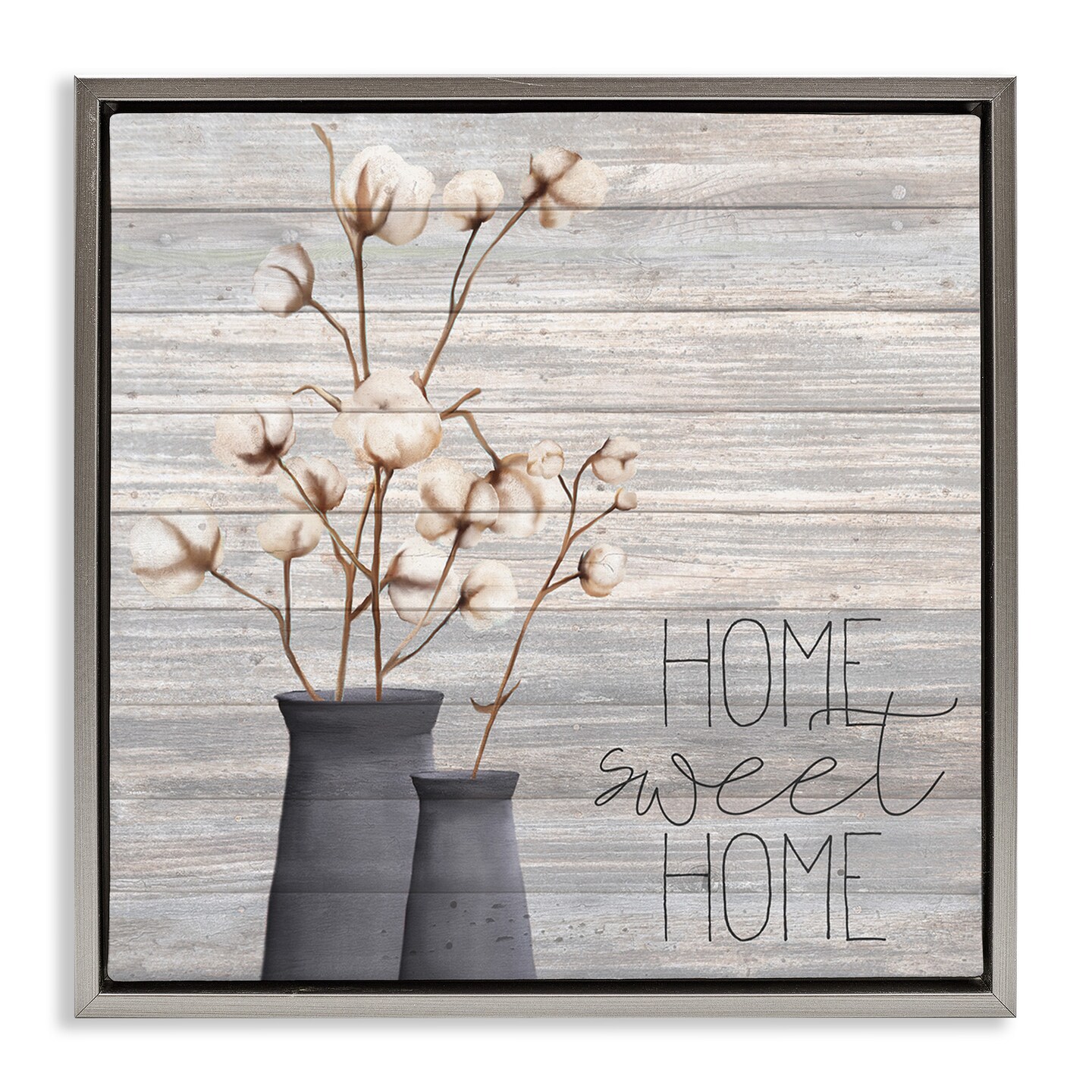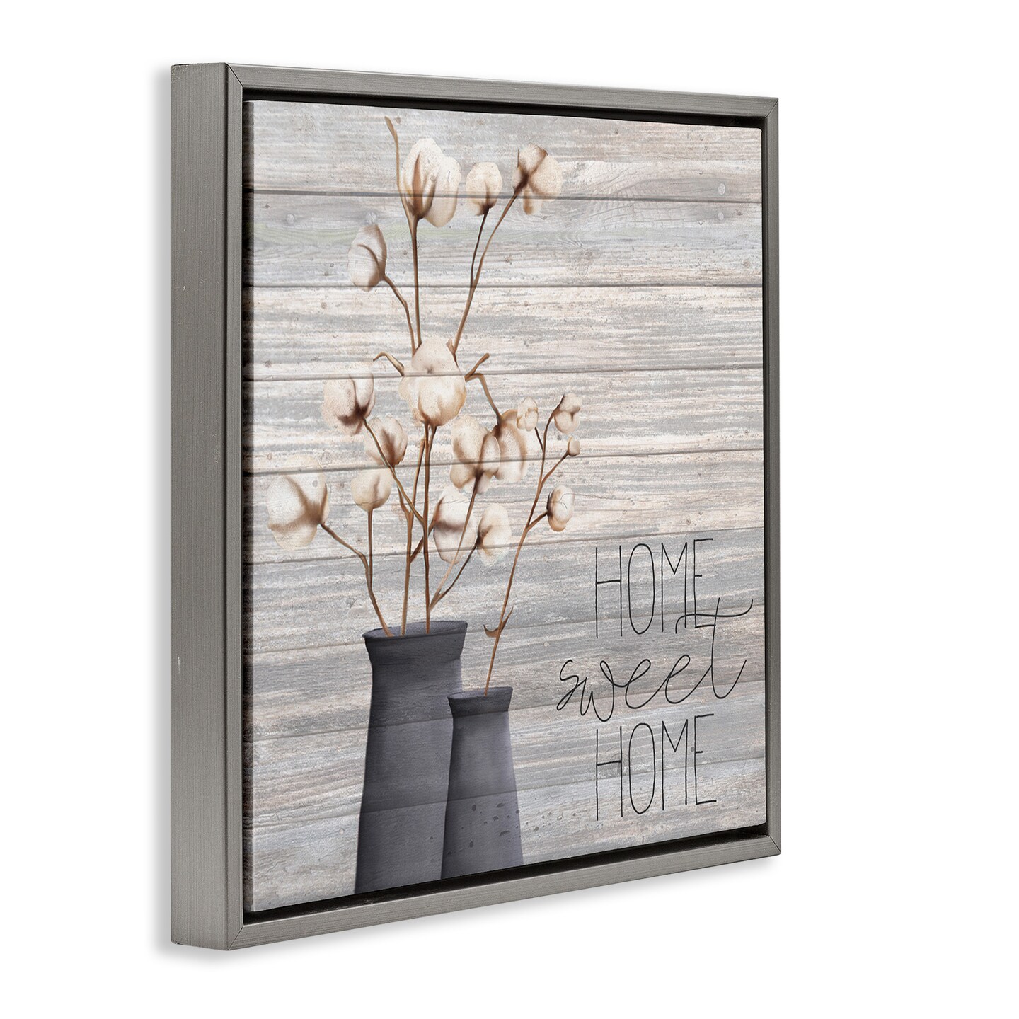 Stupell Industries Grey Home Sweet Cotton Flowers Framed Floater Canvas Wall Art