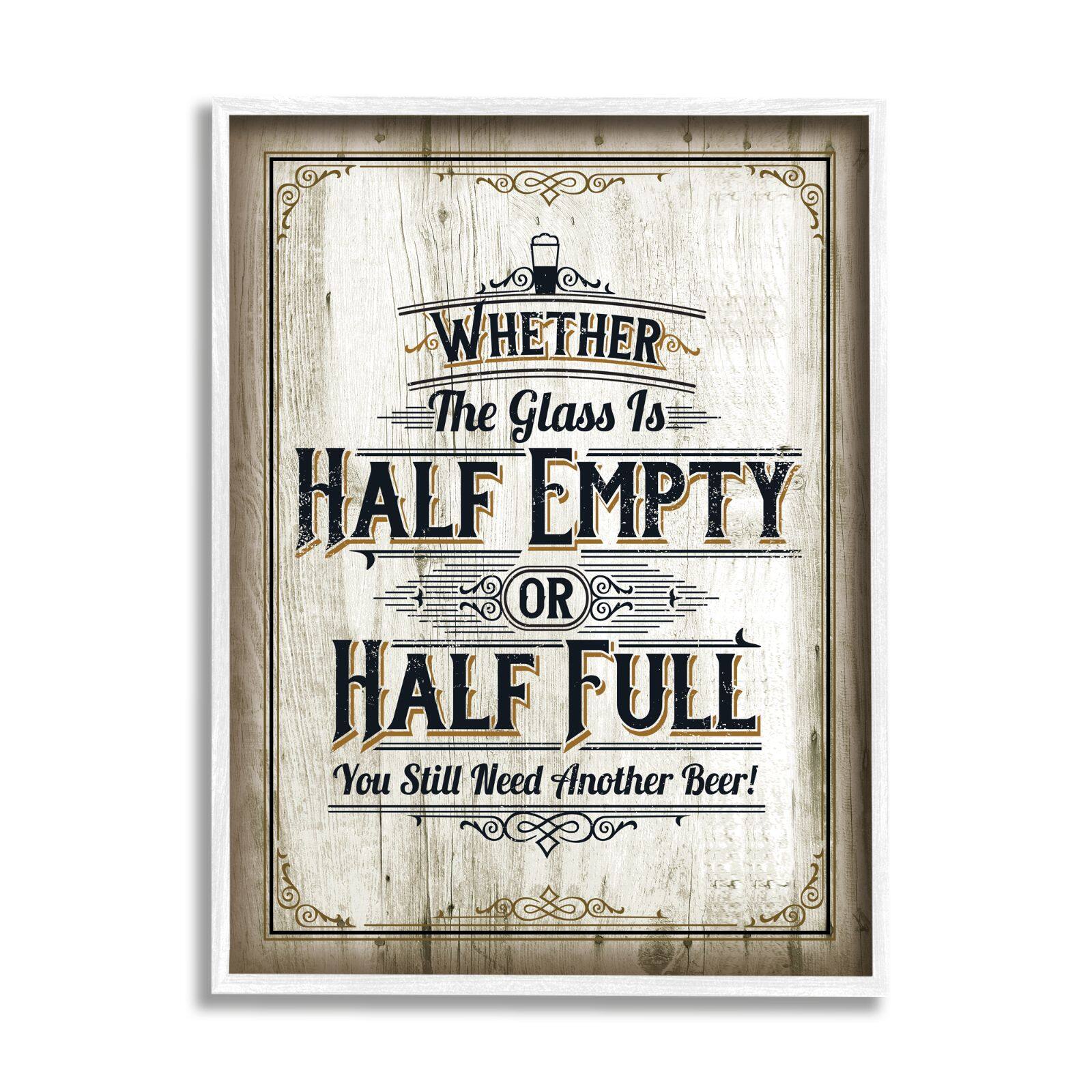 Stupell Industries Half Empty Beer Sign Bar Room Word Design Framed Wall Art