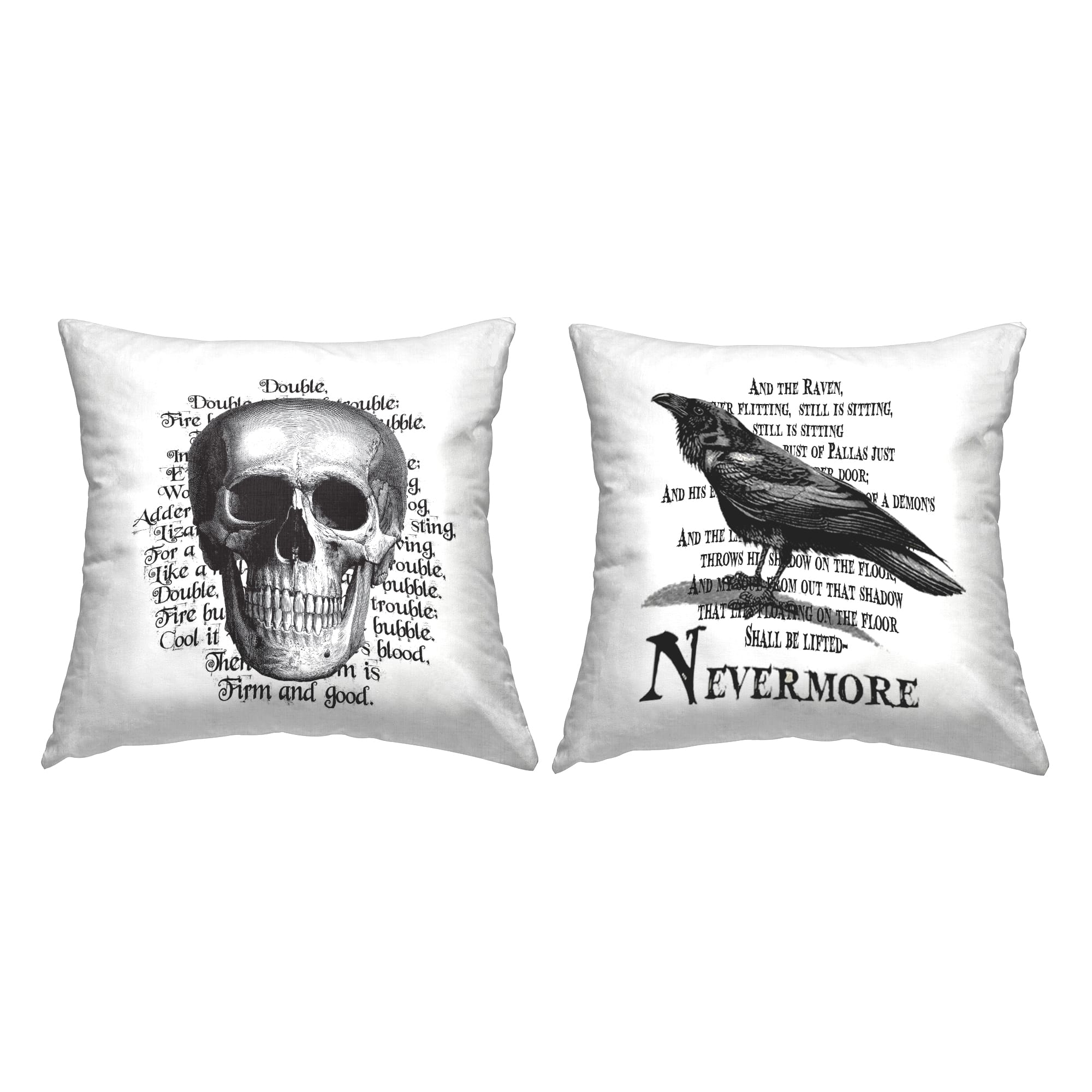 Stupell Industries Halloween Skull & Crow Poetry Throw Pillow Set