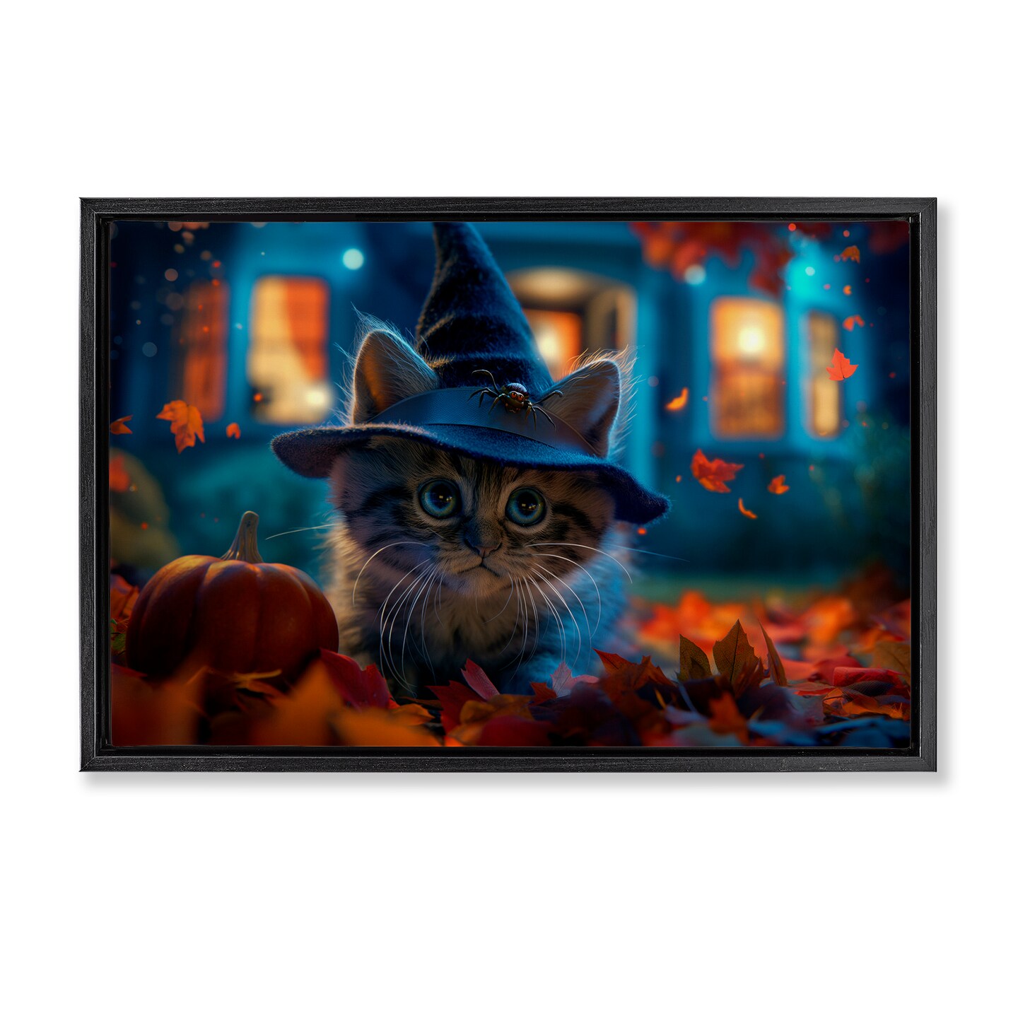 Stupell Industries Halloween Witch Kitten & Pumpkin Floating Frame Design by Wumples