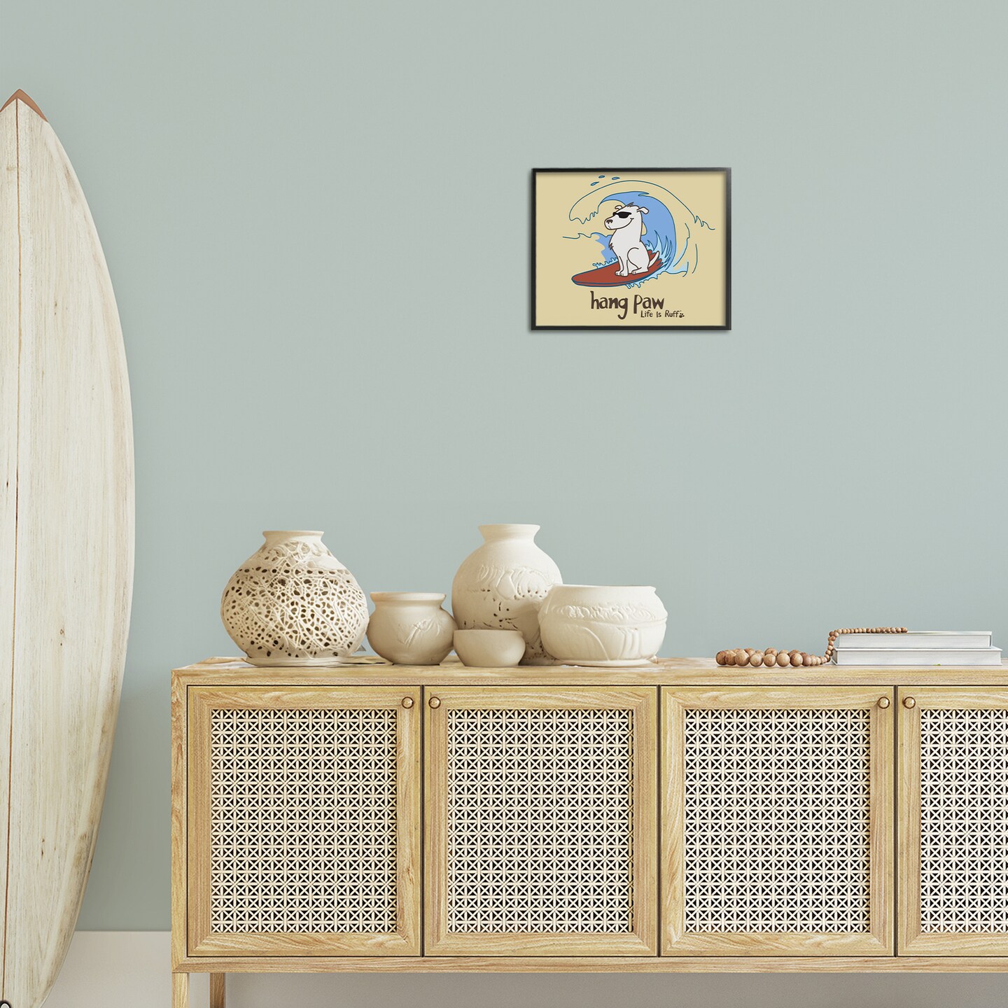 Stupell Industries Hang Paw Surfing Dog Framed Giclee Wall Art Design by LIR