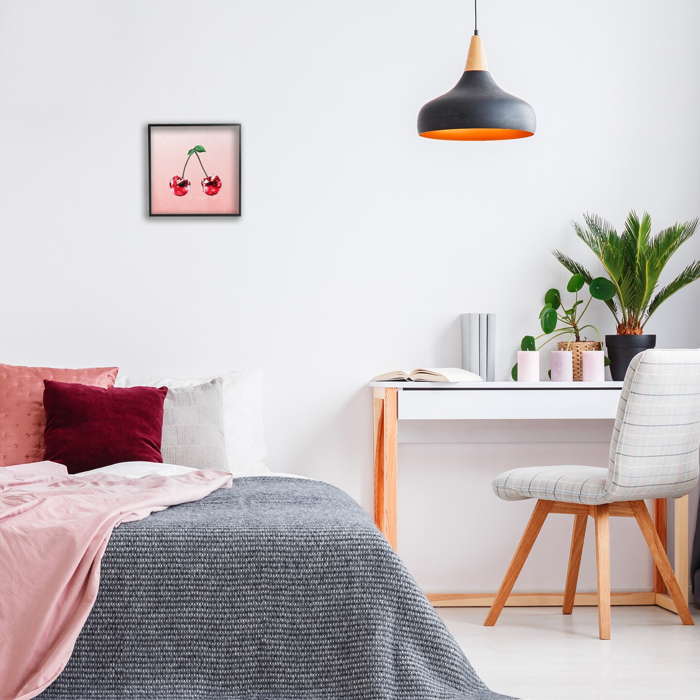 Stupell Industries Happiness Disco Cherries Framed Giclee Design by Kim Allen