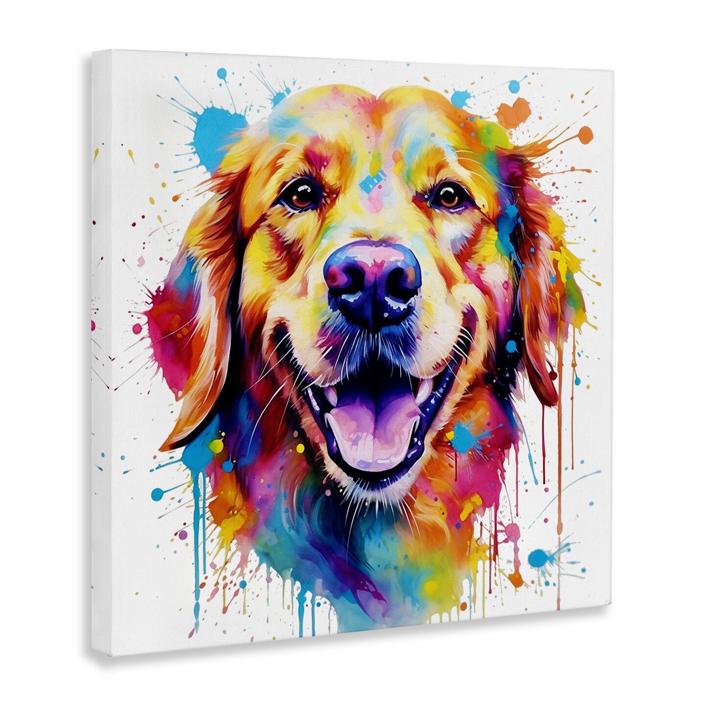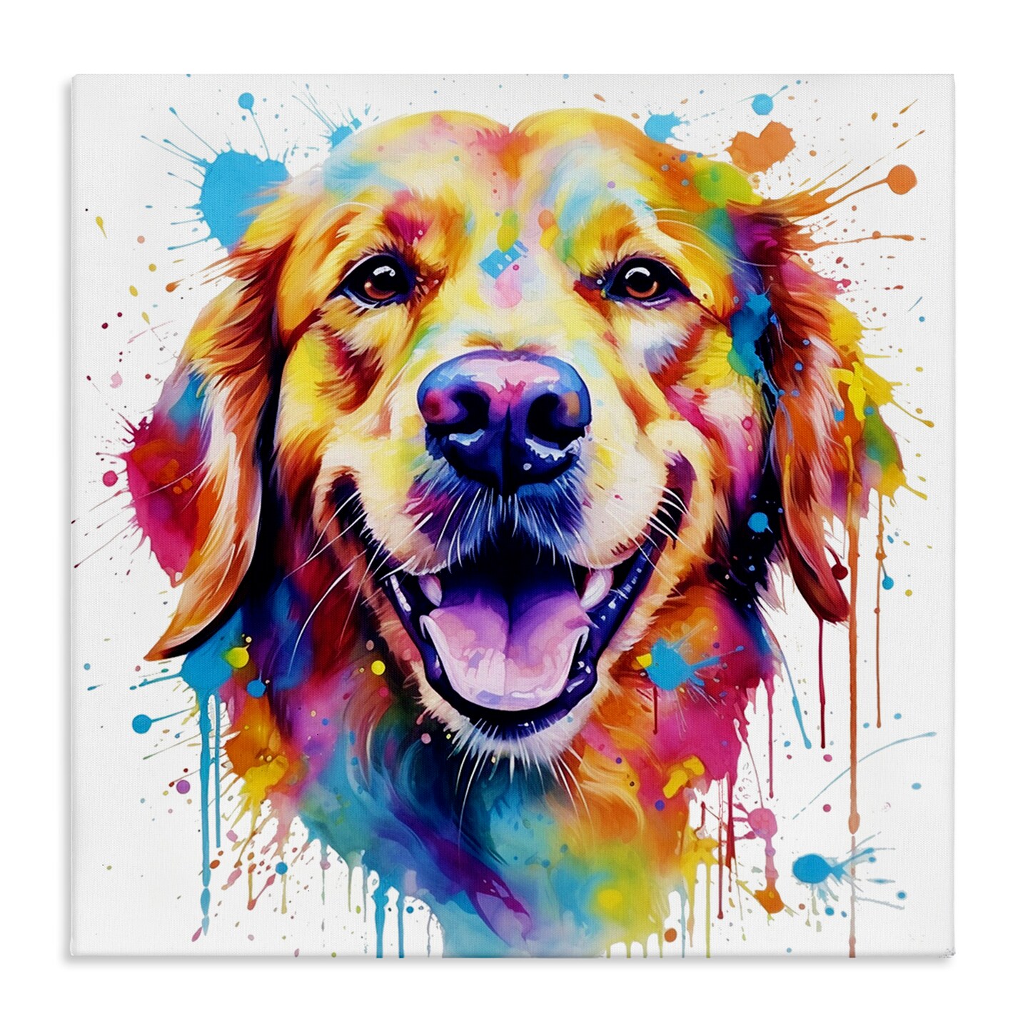 Stupell Industries Happy Dog Paint Drip Canvas Wall Art