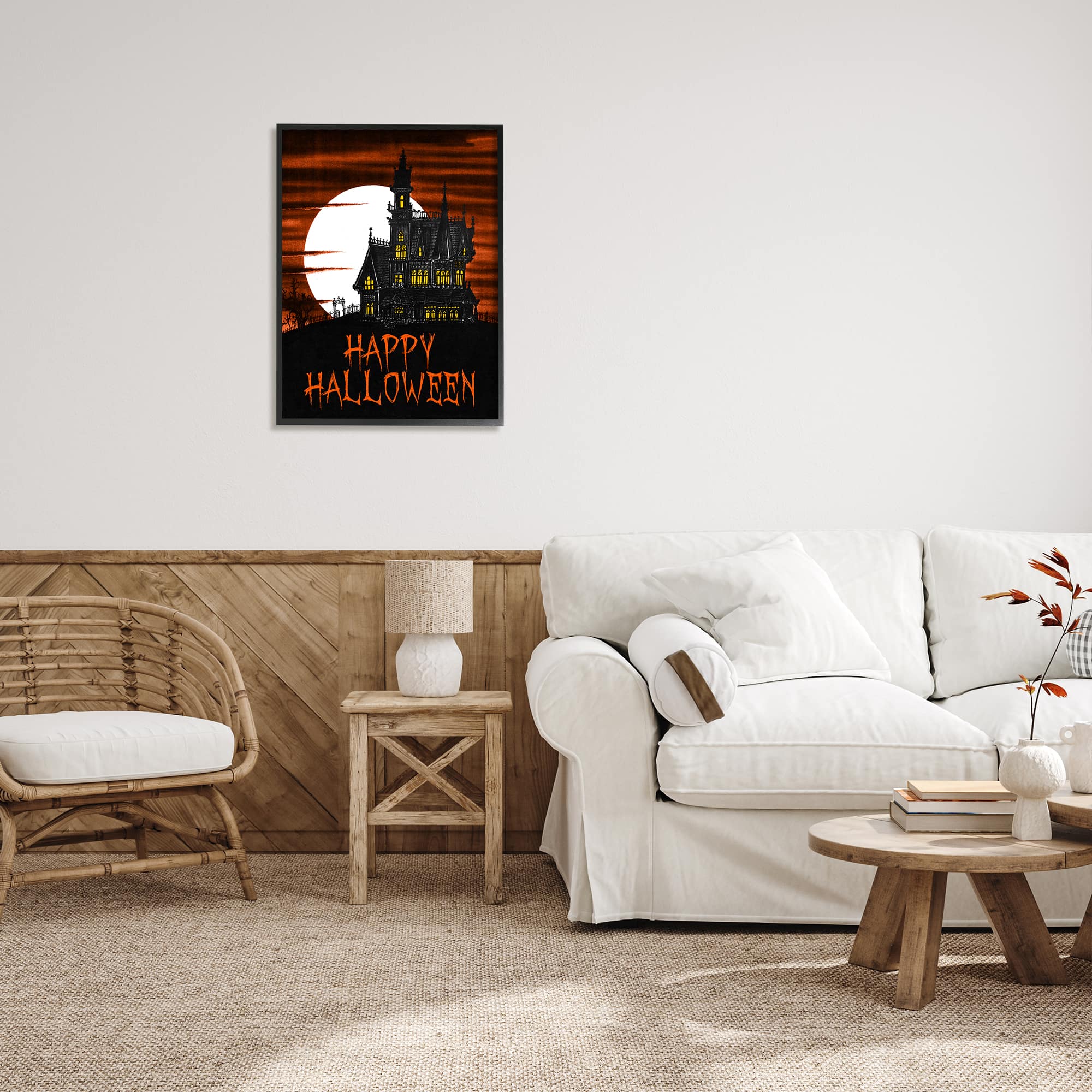 Stupell Industries Happy Halloween Haunted House Framed Giclee Art