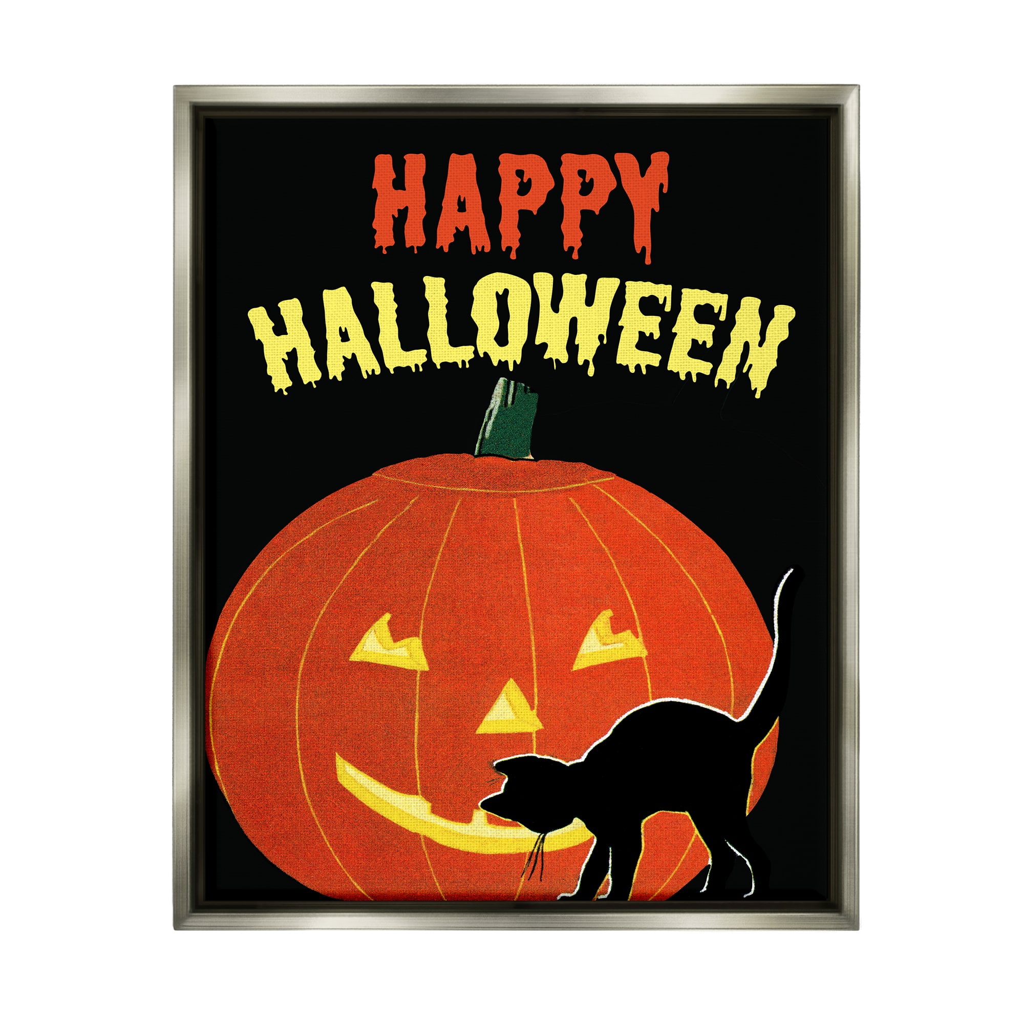 Stupell Industries Happy Halloween Haunted Jack-o-Lantern Framed Floater Canvas Wall Art