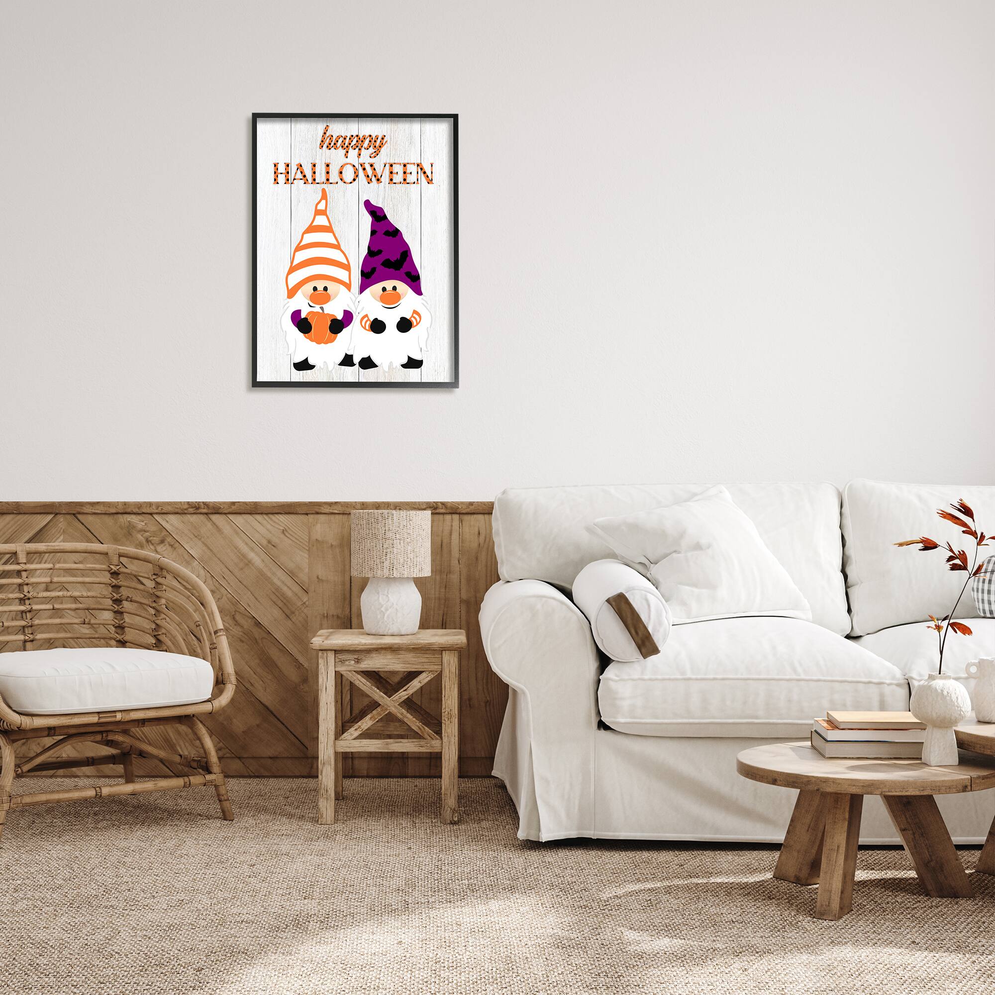 Stupell Industries Happy Halloween Seasonal Gnomes Framed Giclee Art