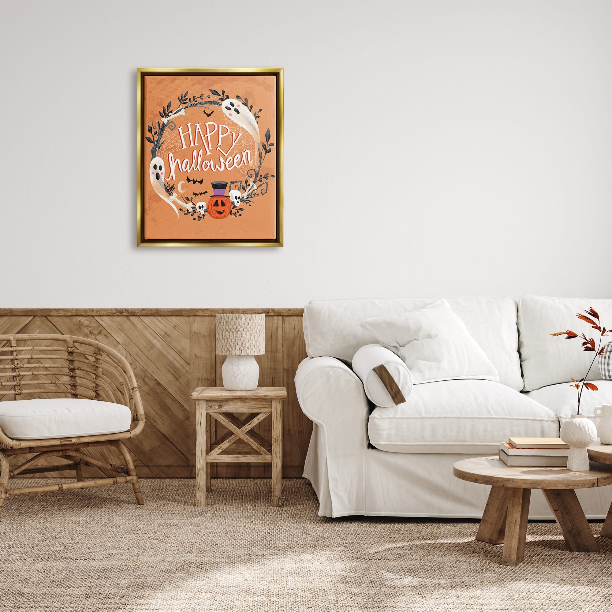 Stupell Industries Happy Haunts Halloween Wreath Framed Floater Canvas Wall Art