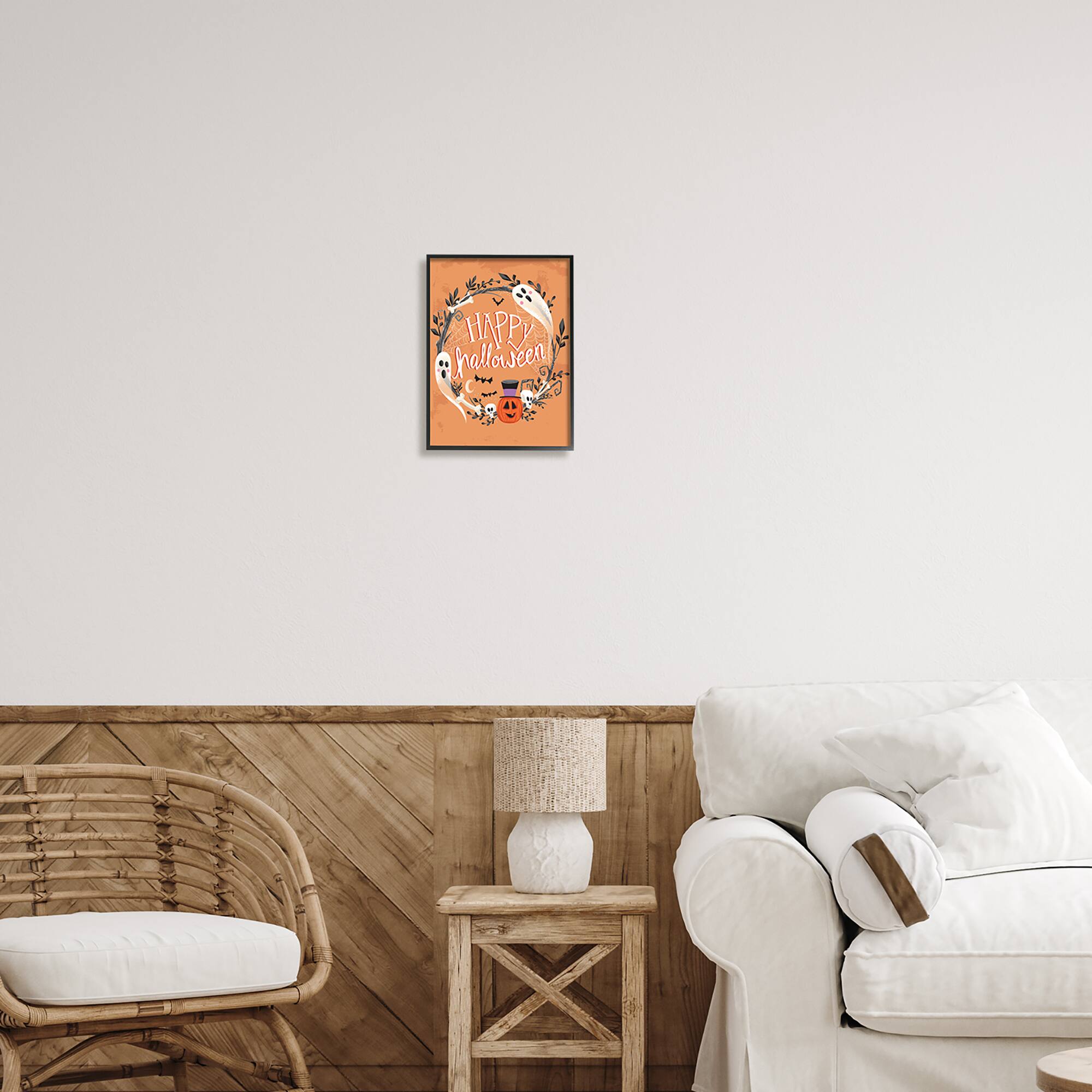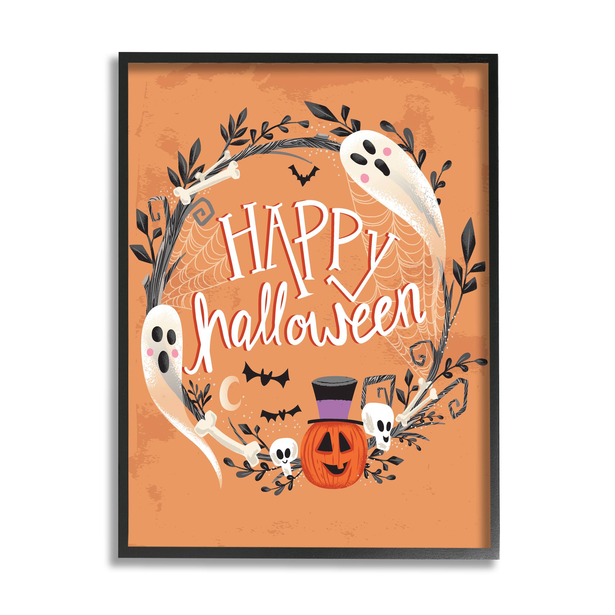 Stupell Industries Happy Haunts Halloween Wreath Framed Giclee Art