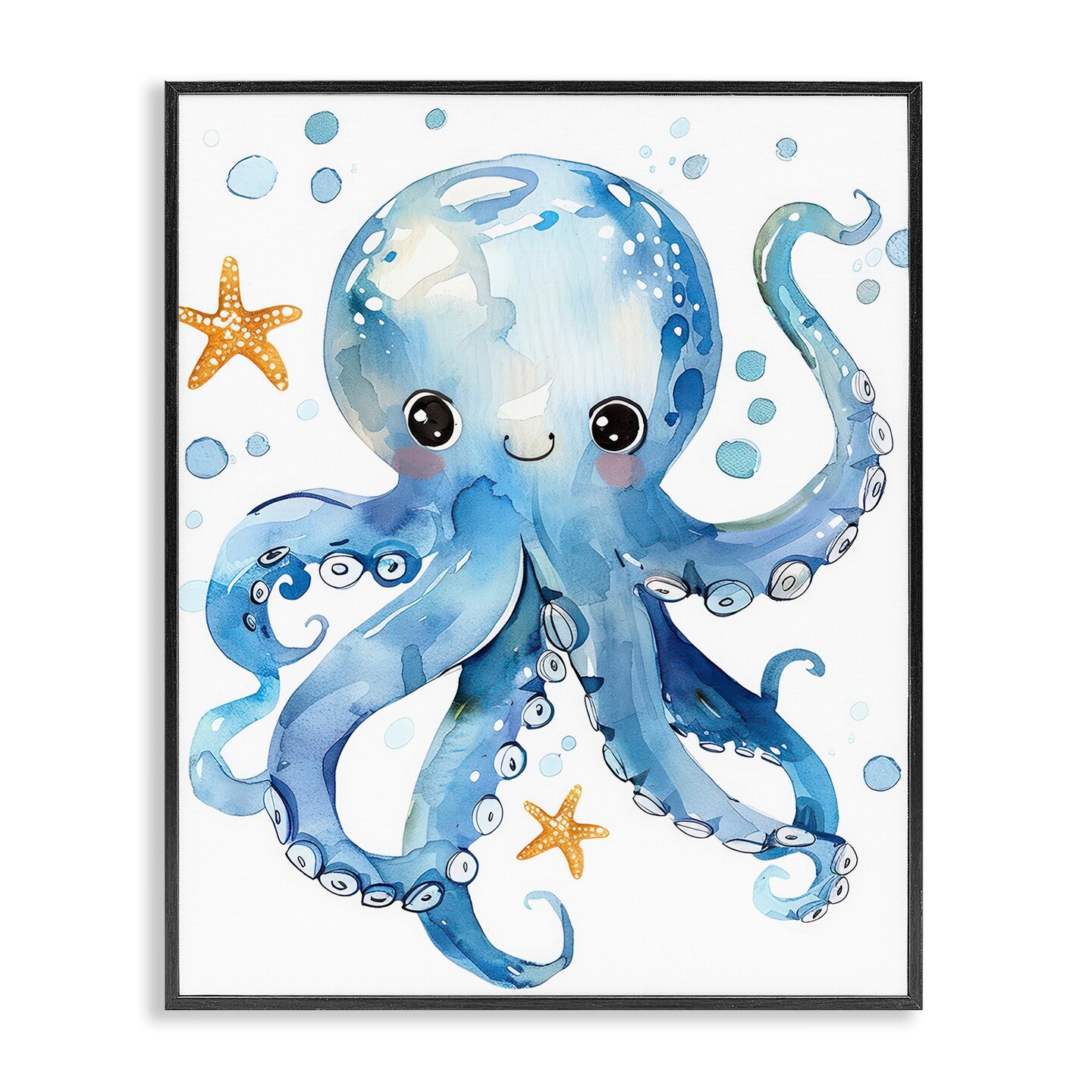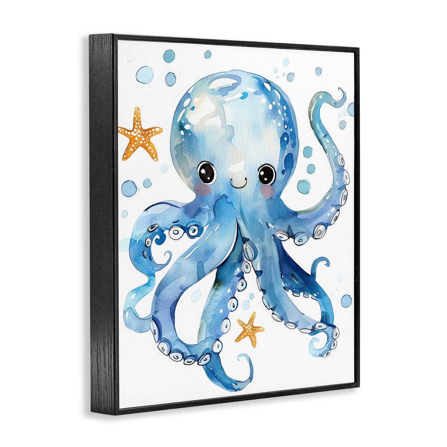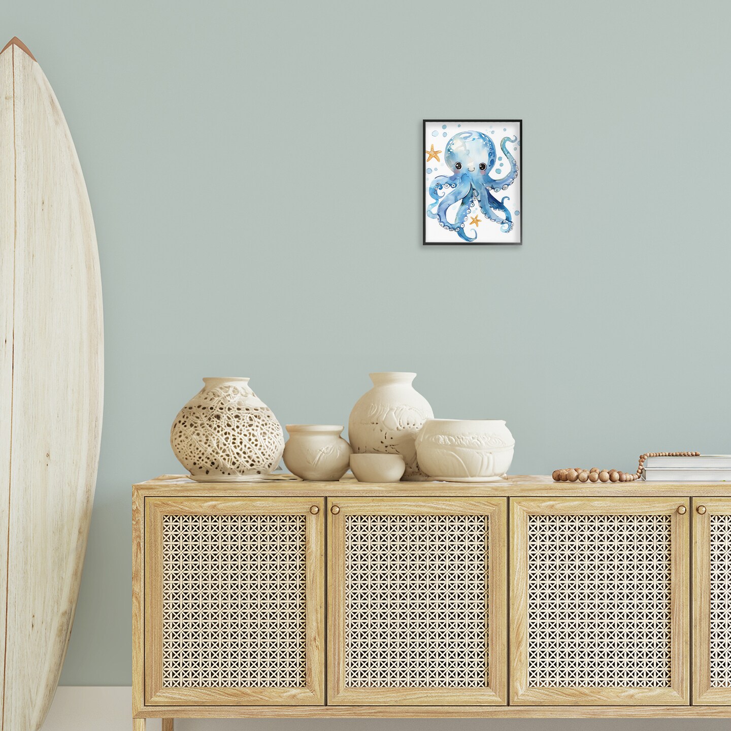 Stupell Industries Happy Smile Octopus Framed Giclee Wall Art Design by Franklyn Gregory