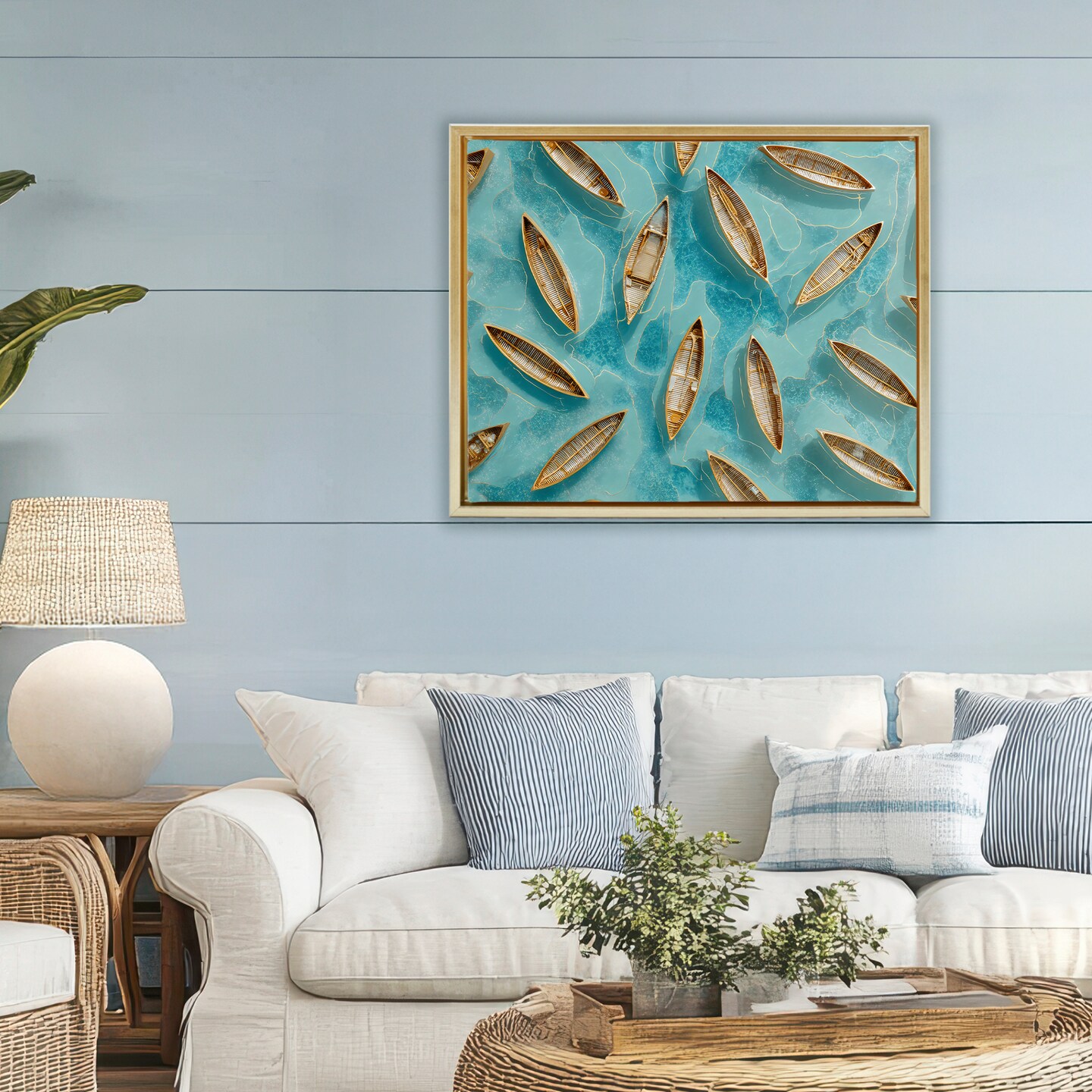Stupell Industries Harmonious Canoes on Water Floating Frame, design by Franklyn Gregory