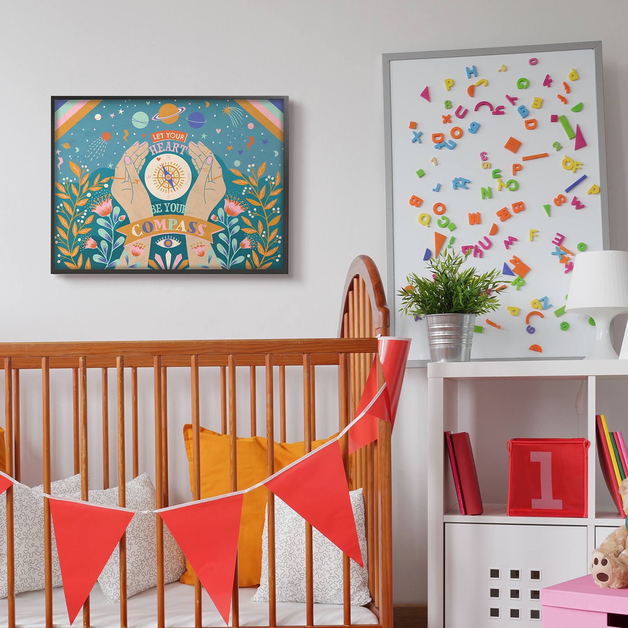 Stupell Industries Heart Be Your Compass Phrase Boho Chic Constellations in Black Frame Wall Art
