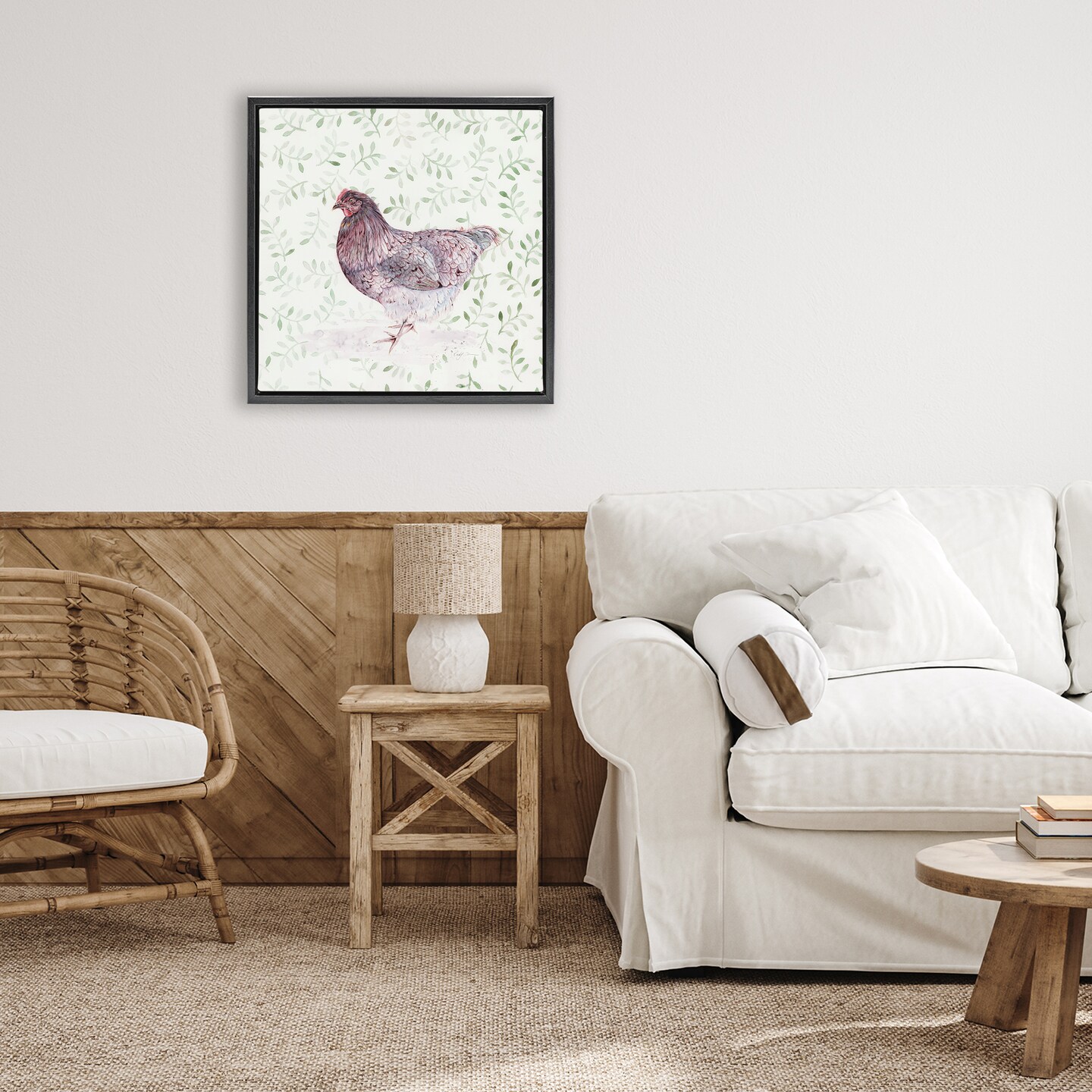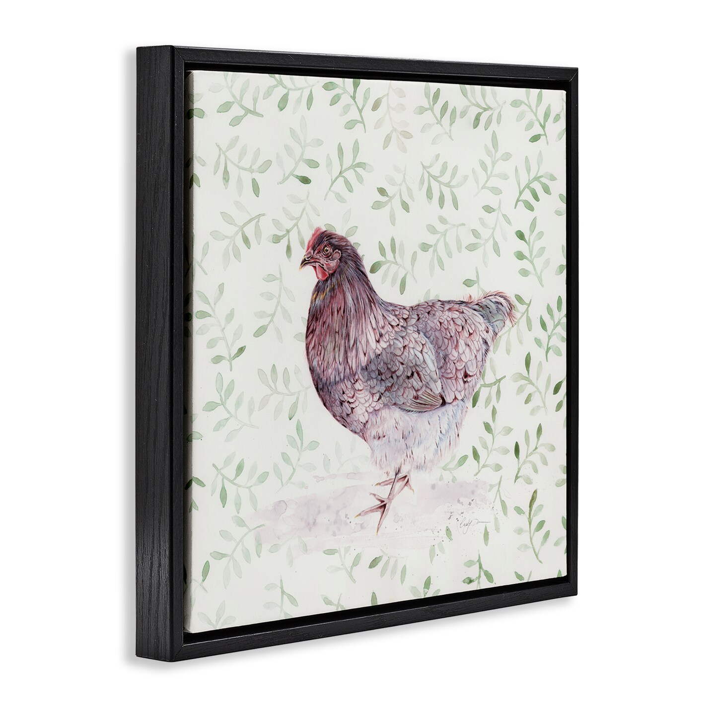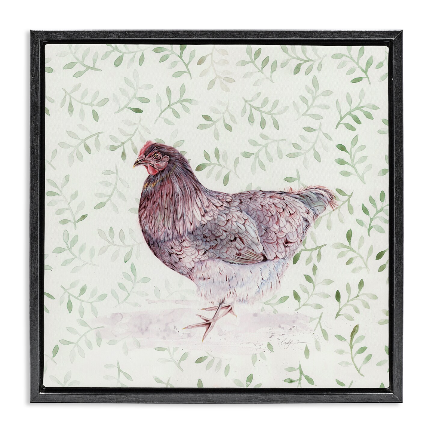 Stupell Industries Hen Portrait on Leaf Sprigs Floating Frame, design by Cady Driver
