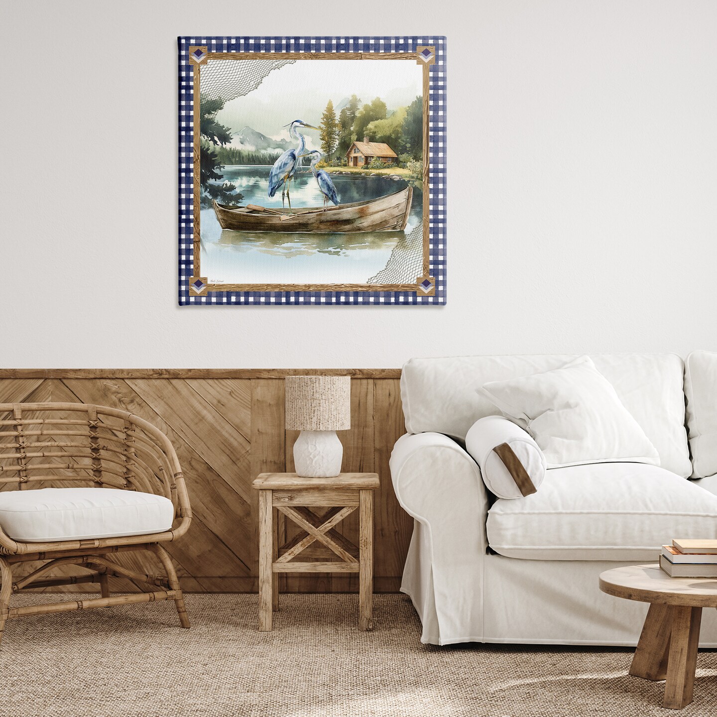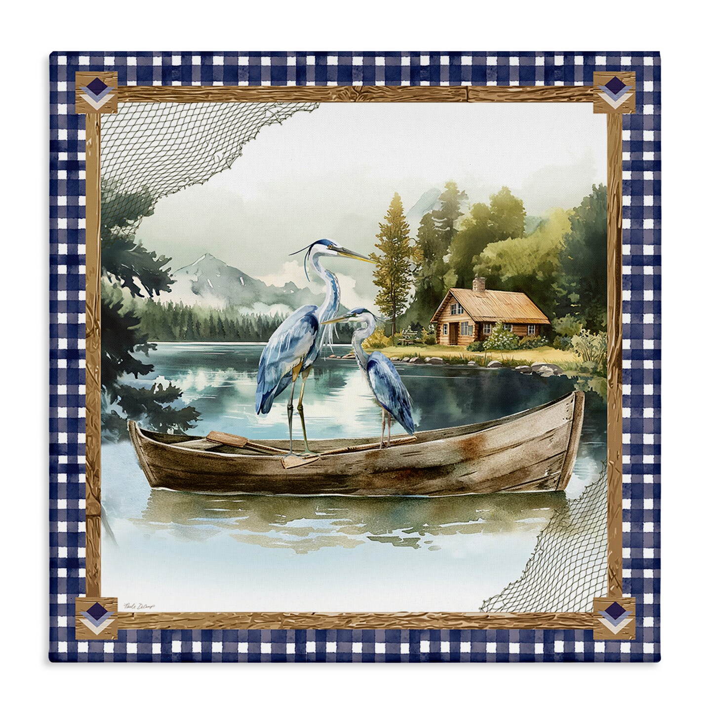 Stupell Industries Herons on Boat with Tartan Canvas Design by Nicole DeCamp