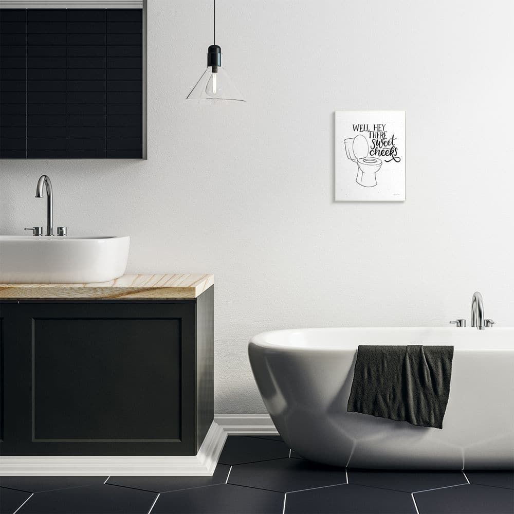 Stupell Industries Hey There Sweet Cheeks Toilet Bathroom Joke Word Pun Wood Wall Plaque