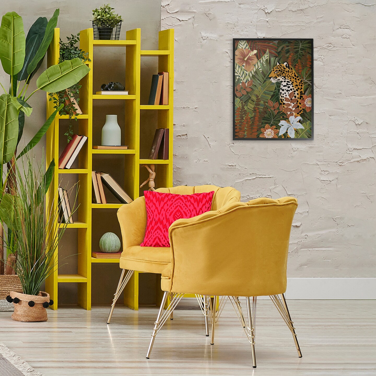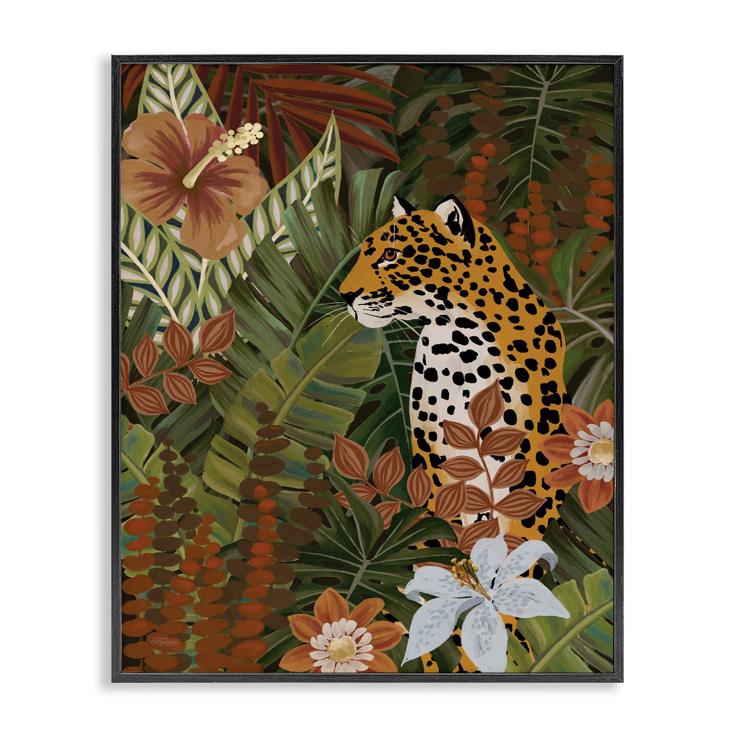 Stupell Industries Hibiscus Jungle Leopard Framed Giclee Wall Art Design by Cat Thurman Designs