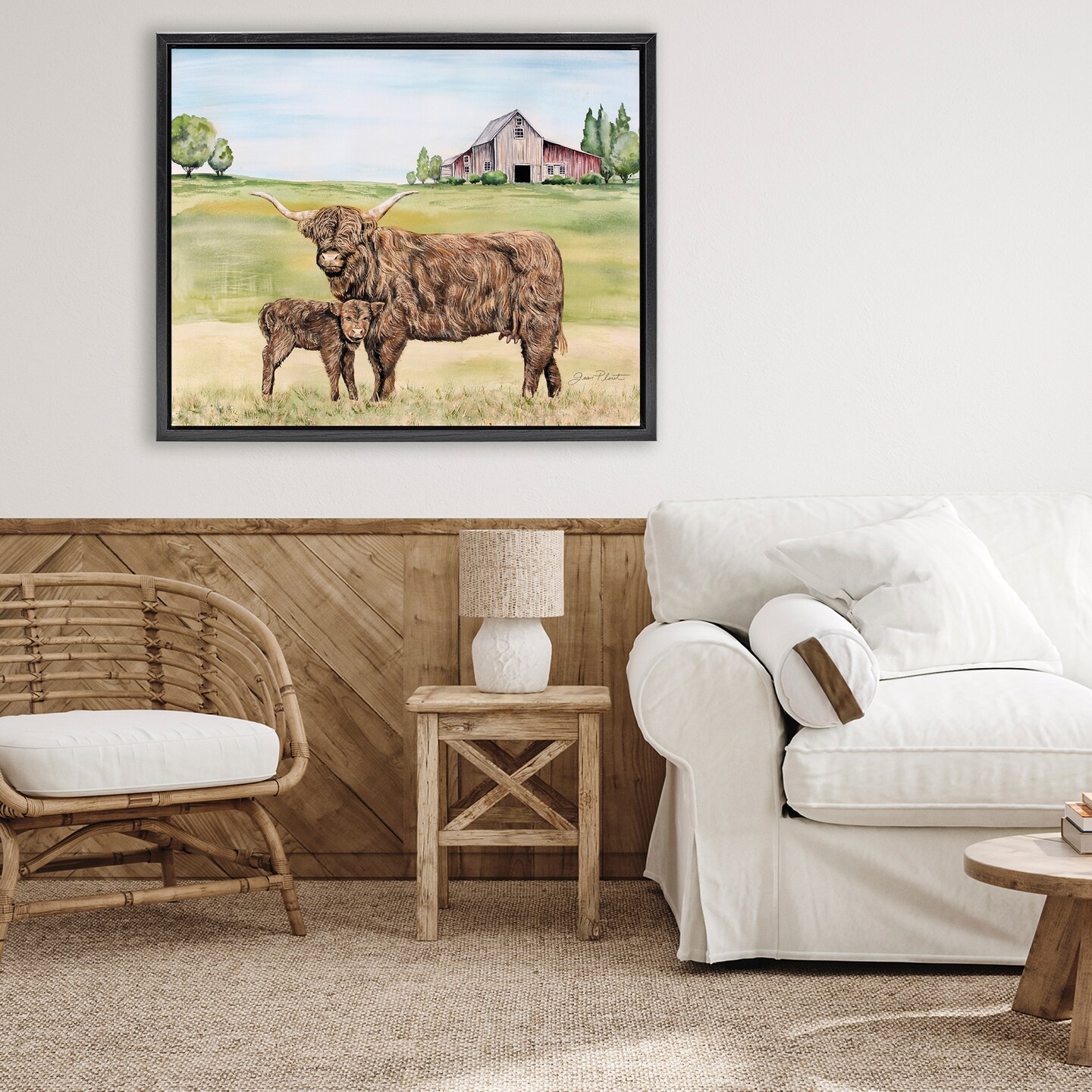Stupell Industries Highland Cow And Calf Floating Frame, design by Jean Plout