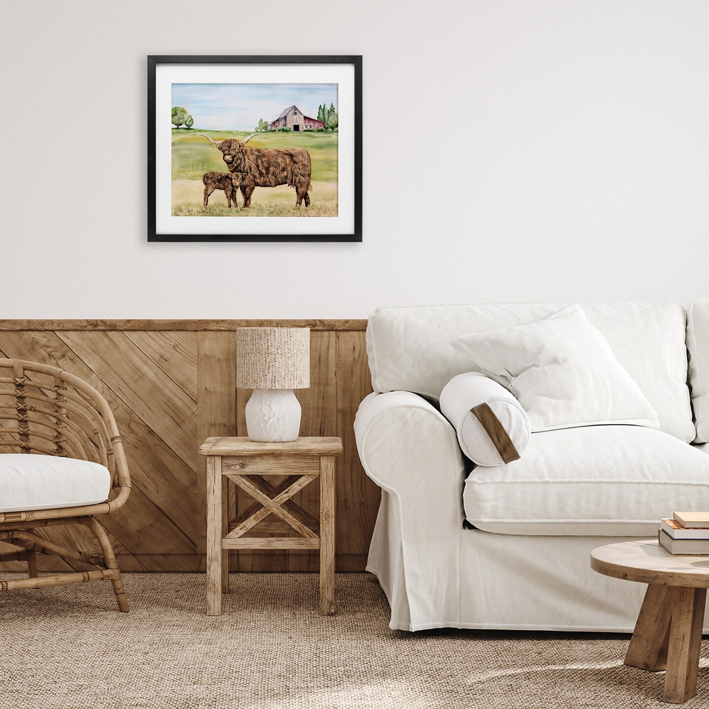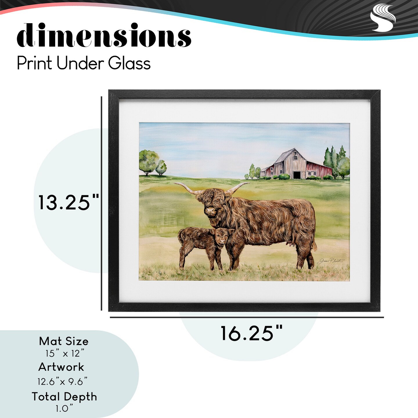Stupell Industries Highland Cow And Calf Framed Print Under Glass, design by Jean Plout