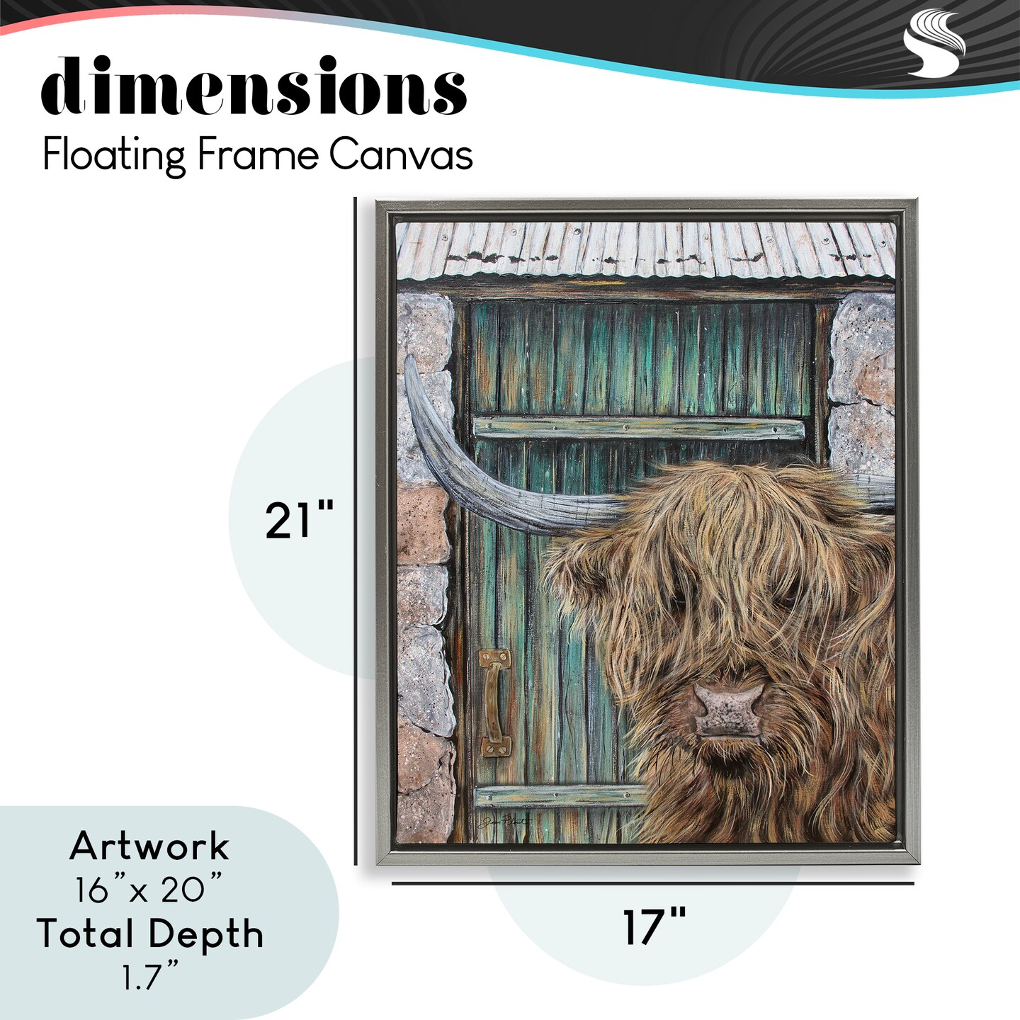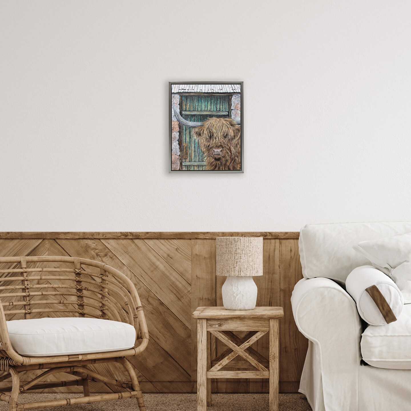 Stupell Industries Highland Cow by Barn Door Floating Frame, design by Jean Plout