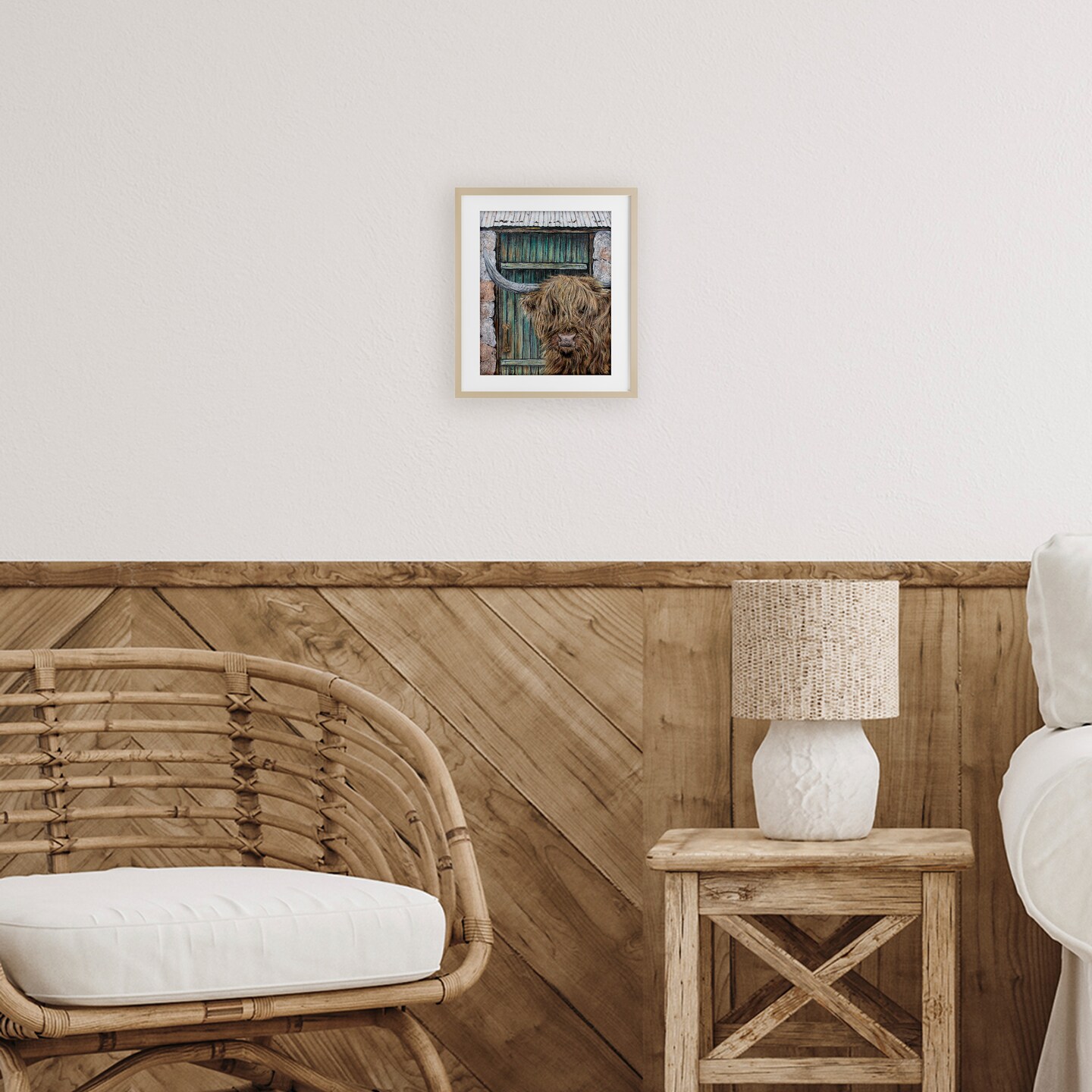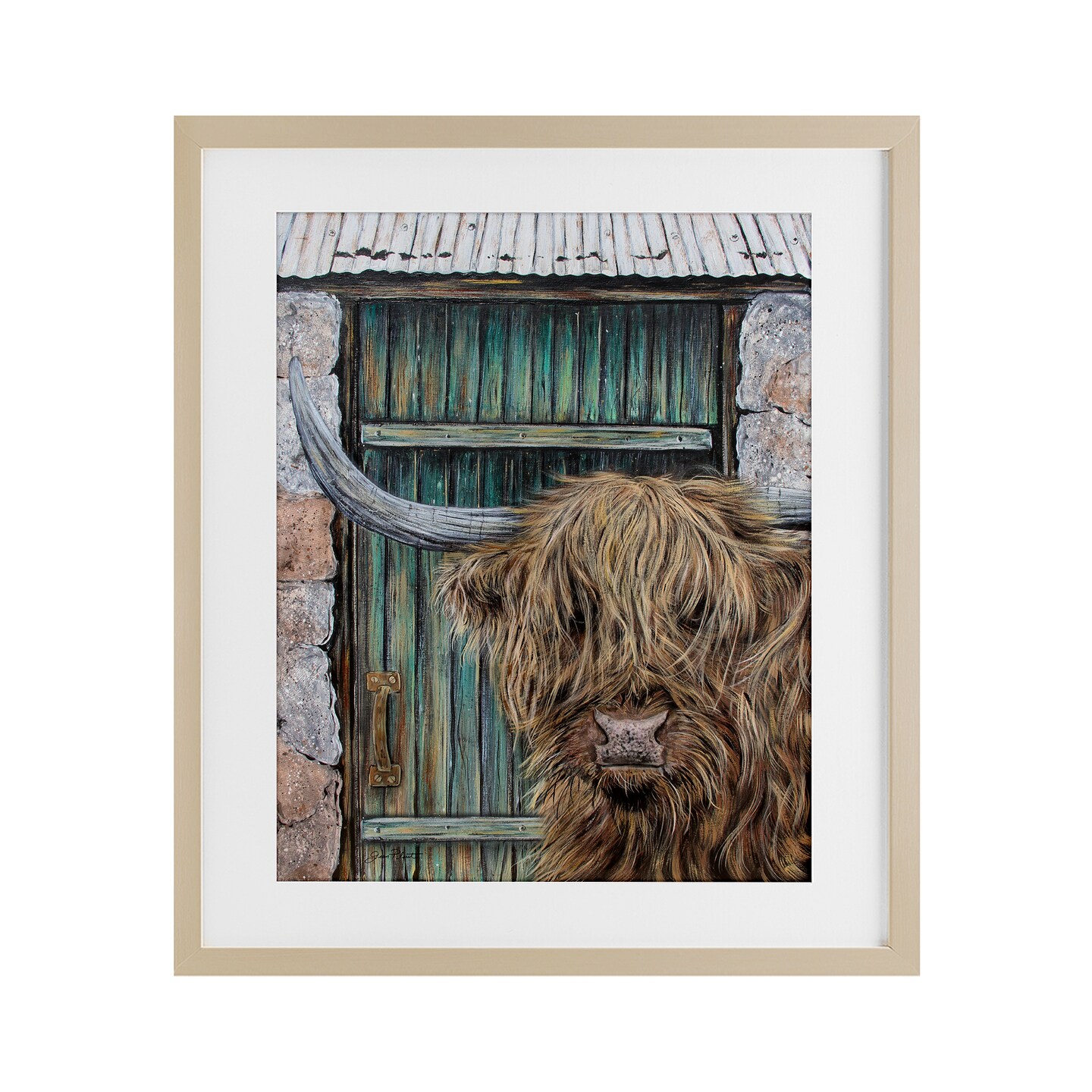 Stupell Industries Highland Cow by Barn Door Framed Print Under Glass, design by Jean Plout