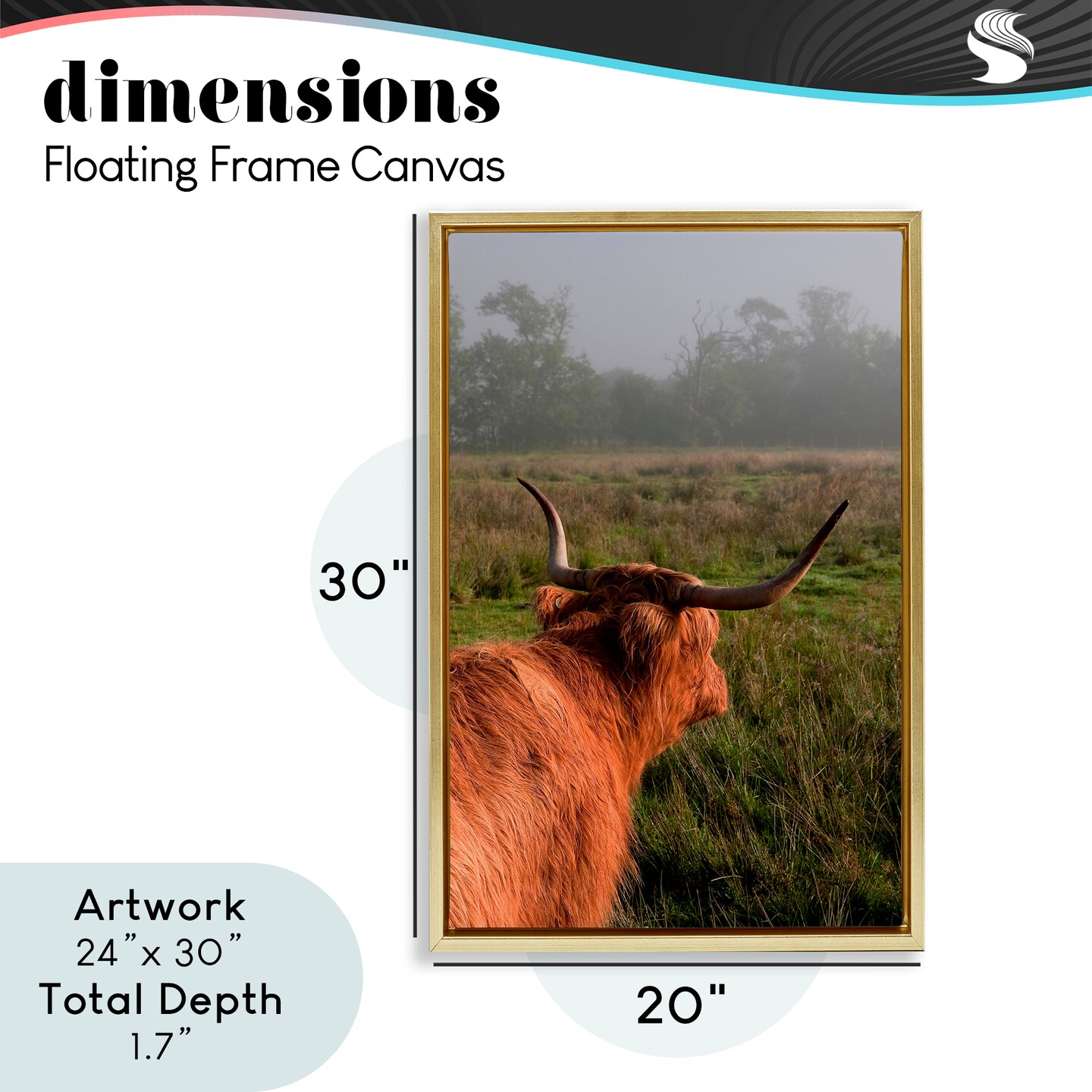 Stupell Industries Highland Cow Gazing Out Floating Frame, design by Jenny Rainbow Fine Art