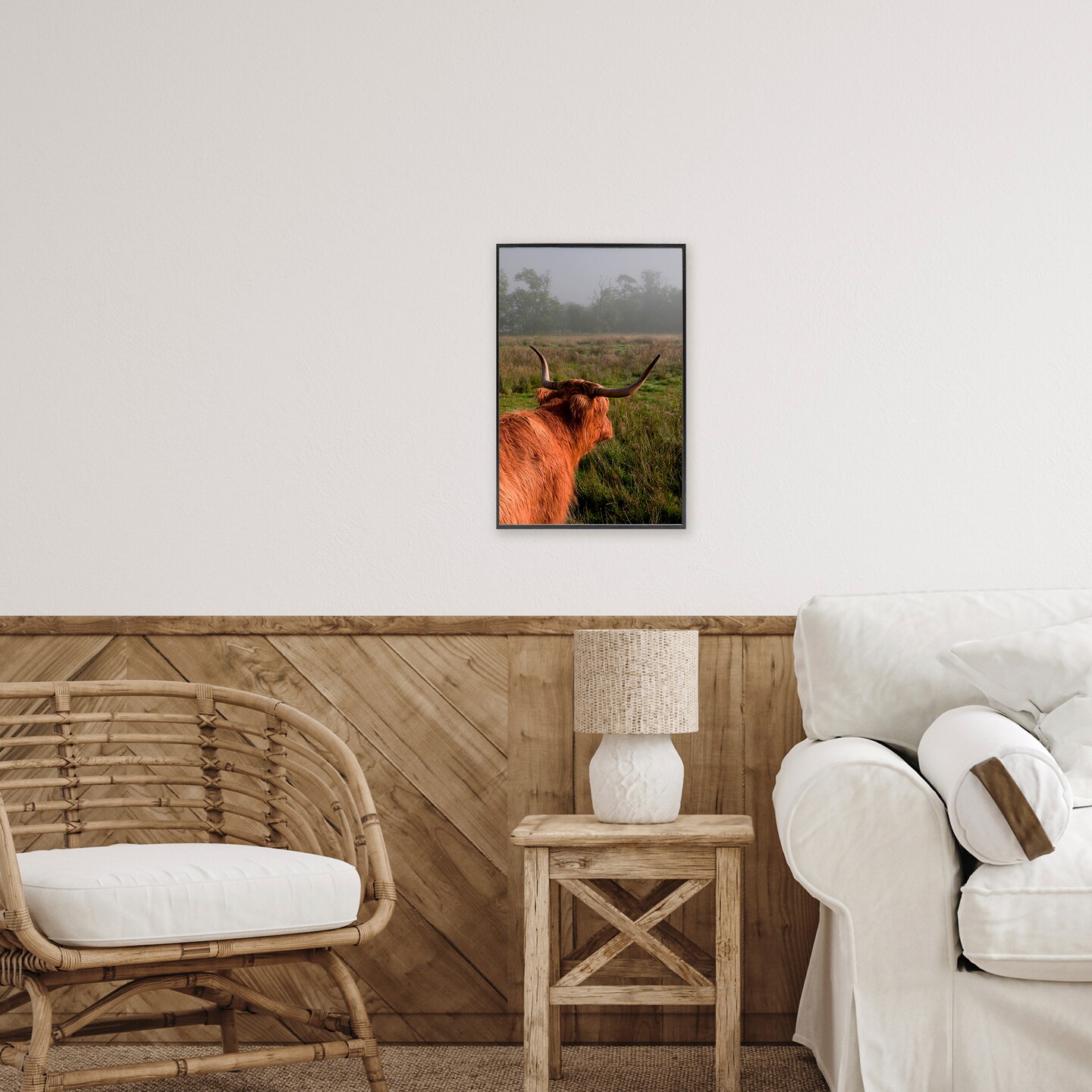 Stupell Industries Highland Cow Gazing Out Framed Giclee, design by Jenny Rainbow Fine Art