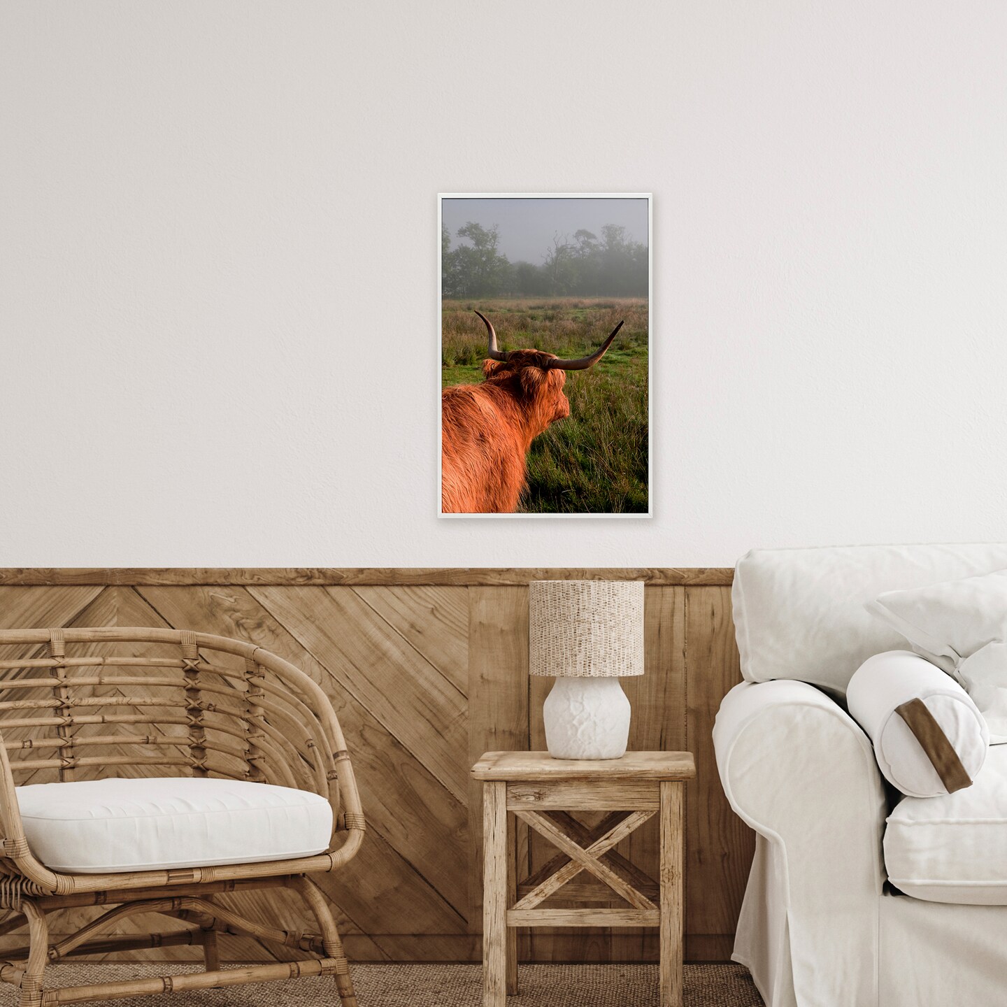 Stupell Industries Highland Cow Gazing Out Framed Giclee, design by Jenny Rainbow Fine Art