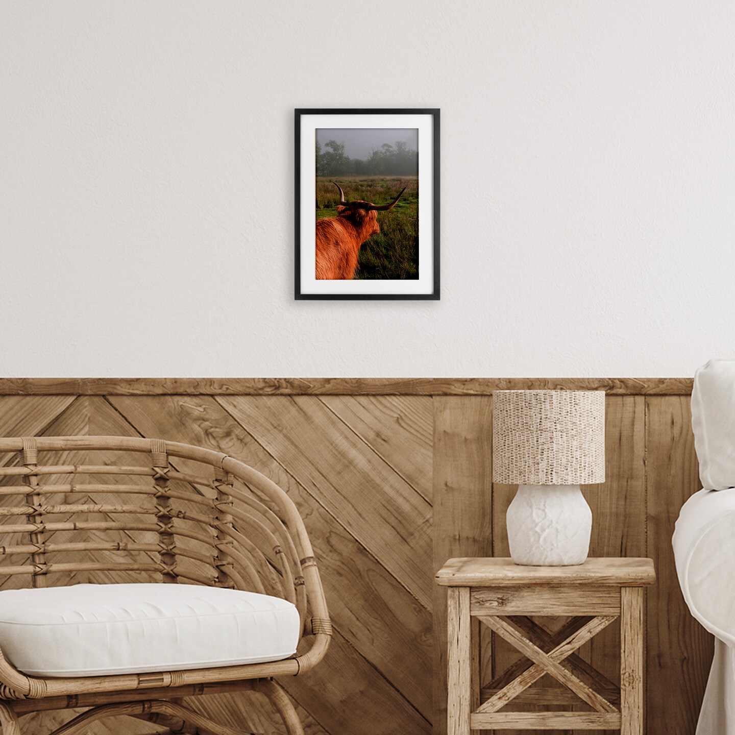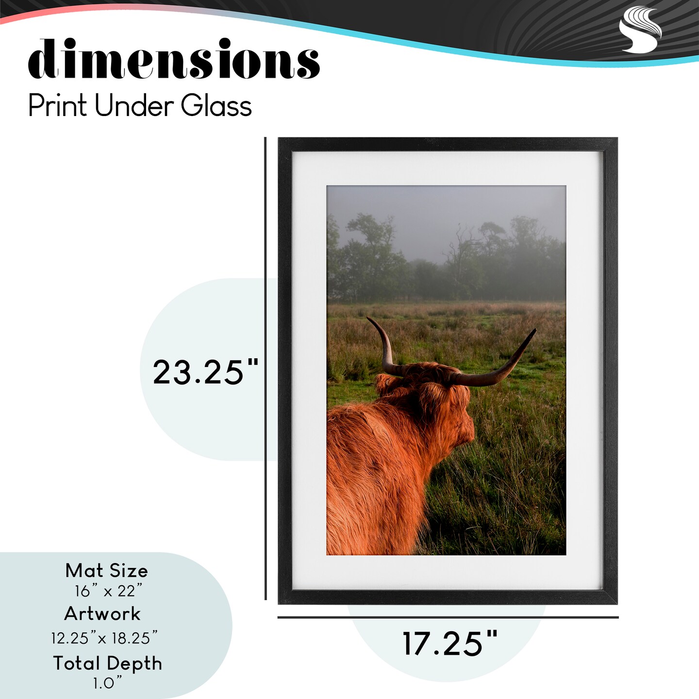 Stupell Industries Highland Cow Gazing Out Framed Print Under Glass, design by Jenny Rainbow Fine Art