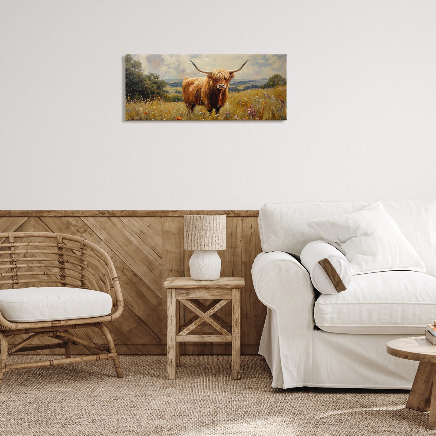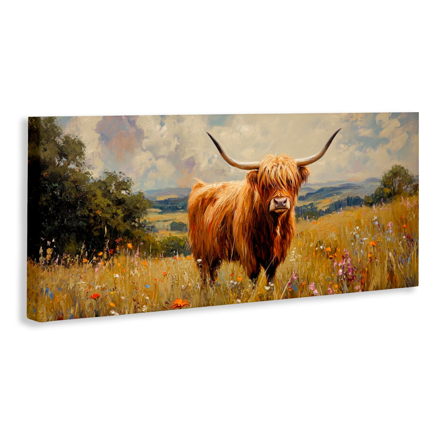 Stupell Industries Highland Cow In Sunshine Canvas, design by Petal Prints Design