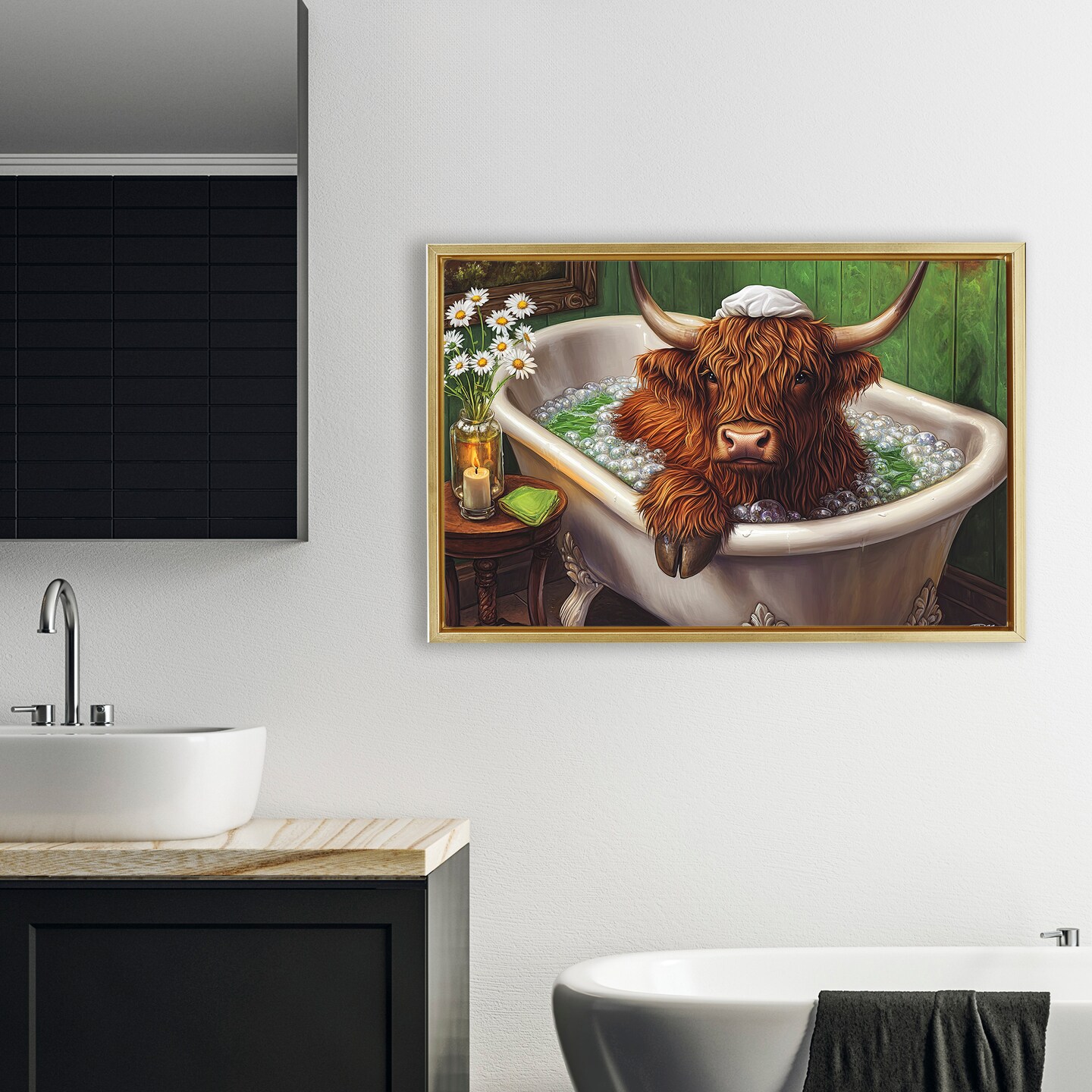Stupell Industries Highland in Candle Lit Bubble Bath Floating Frame, design by Momart