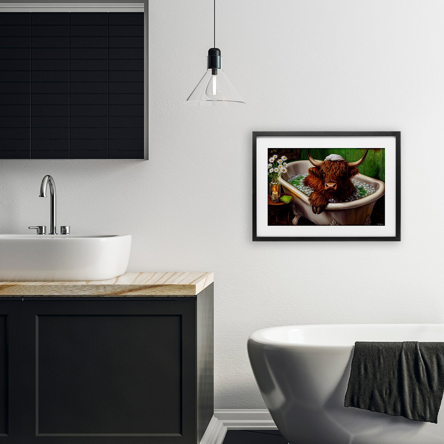 Stupell Industries Highland in Candle Lit Bubble Bath Framed Print Under Glass, design by Momart