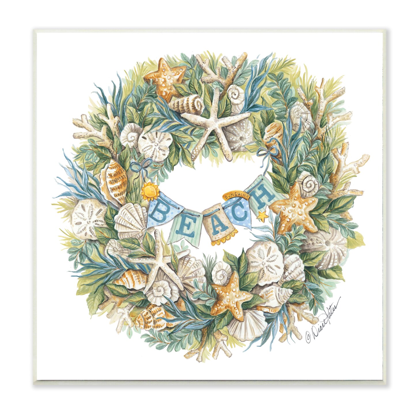 Stupell Industries Holiday Beach Seashell Wreath Wall Plaque Art