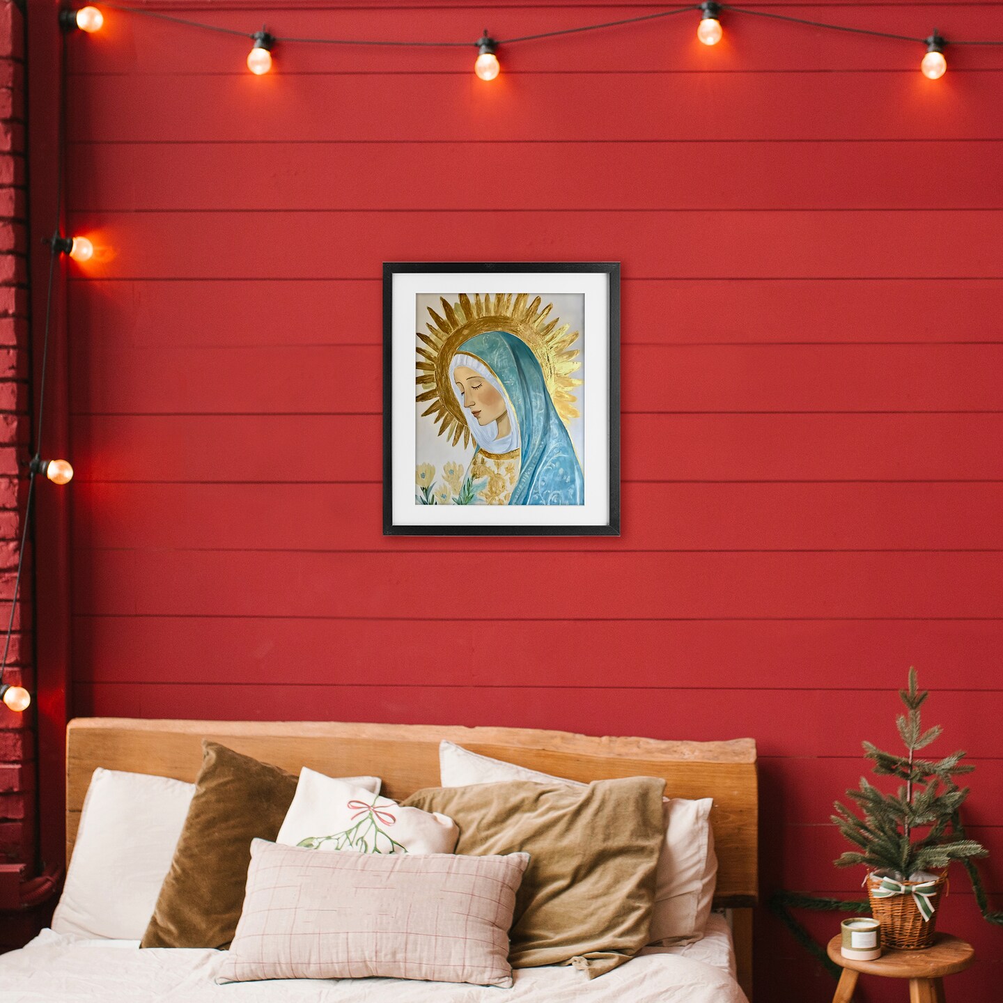 Stupell Industries Holy Mary In Gold Framed Print Under Glass, design by Franklyn Gregory