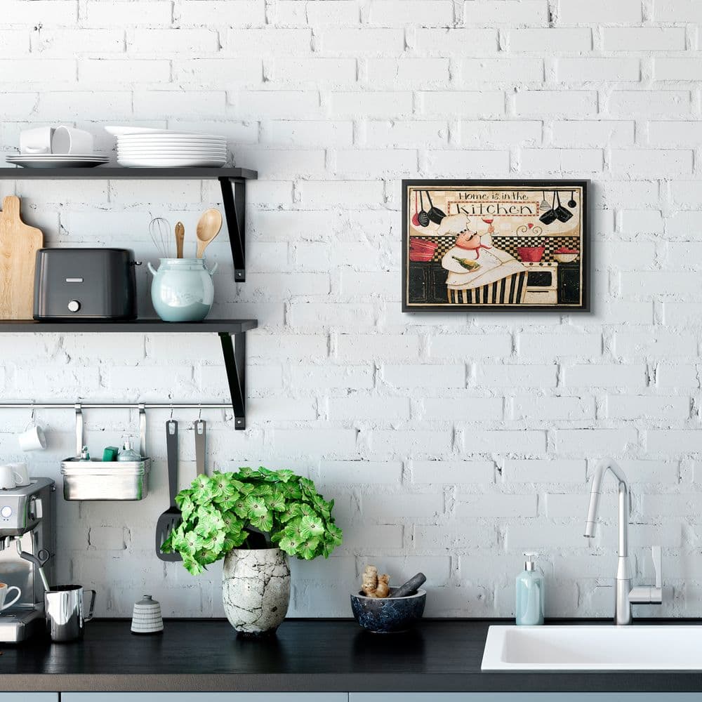 Stupell Industries Home is in the Kitchen with Happy Chef Illustration Framed Wall Art