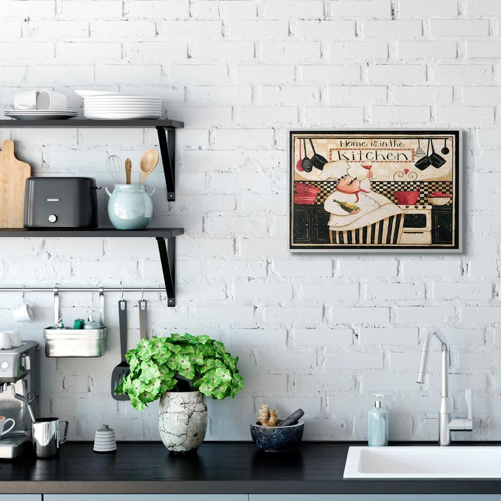 Stupell Industries Home is in the Kitchen with Happy Chef Illustration Framed Wall Art
